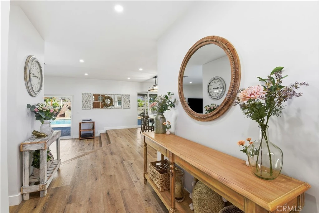 A rare opportunity to own a beautifully updated single-story home tucked away on a cul-de-sac, featuring 1,823 sq ft of living space with an expansive 11,761 sq ft lot. This 4-bedroom, 2.5-bath, with a sparkling pool offers wonderful upgrades with a spacious outdoor setting creating an ideal space for everyday living and entertaining. Step into an open concept living room with a cozy fireplace, dining area, new sliding doors and windows allowing natural light to fill the home. The updated kitchen has quartz countertops, ample kitchen cabinet space, with a large pantry and peninsula seating. Step outside to the completely refinished pool, over 15 fruit trees, and 3 storage sheds for tons of storage. The front yard is freshly landscaped with an automatic sprinkler system. The home is packed with upgrades such as new HVAC, electrical throughout, recessed lighting, new insulation in attic, all new doors including the front door, plantation shutters, exterior stucco and more. This home has been kept within the family for over 60 years and is being offered for the first time. This home reflects years of thoughtful improvements, with room for the next owner to add their own vision. A rare combination of location, lot size, upgrades, shopping, freeway access - this is a home that tells a story and invites the next chapter.