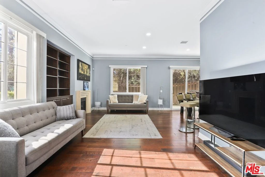 Welcome to the Vistas at Indian Oaks, where privacy and elevated living come together in one of the community's best-positioned end units. Tucked toward the rear, this 3-bedroom, ~1,910 sq. ft. residence offers a quiet setting with open hill views and a true sense of separation. Inside, the layout is open and well-proportioned, with 9-foot ceilings, a central fireplace, and natural light coming through oversized dual-pane windows. Thoughtful details like crown molding, built-ins, and recessed lighting give the home a polished, finished feel without trying too hard. The kitchen is functional and cleanly designed, featuring granite countertops, custom cabinetry, stainless steel appliances, and a 5-burner gas range. It connects seamlessly to both a casual dining area and a private patio, creating an easy indoor-outdoor flow.Upstairs, all three bedrooms are well-sized, including a primary suite that feels like a proper retreat with dual vanities, a walk-in shower, and a soaking tub. A second-floor laundry room adds convenience where it matters. Additional highlights include a direct-access two-car garage and access to a community pool and spa with sweeping valley views. Located near the Chatsworth Nature Preserve, Stoney Point Park, and the Vineyards at Porter Ranch, this is a strong combination of privacy, access, and everyday livability.