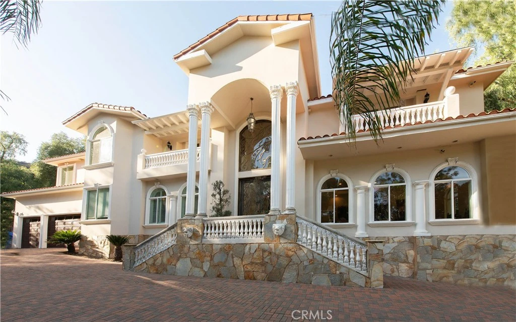 Tucked away in the serene hills of Chatsworth, this ultra-private Mediterranean estate is a rare retreat offering tranquility, majestic city views, and modern luxury—all just minutes from freeways, shopping, and dining. Spanning 7,786 sq. ft., this exquisite residence is brimming with distinctive charm and thoughtful design. Enter through custom wrought-iron double doors into a grand foyer, where an elegant spiral staircase makes a striking first impression. The chef’s kitchen is a culinary dream, featuring high-end appliances, ample counter space, a wine fridge, and a full wet bar. Designed for both comfort and versatility, the home offers six spacious bedrooms, including a first-floor guest suite with gorgeous spa tub and private yard access, ideal for guests or multigenerational living. Additional highlights include a study, library, executive office with built-ins, sauna, and game room. The lavish upstairs primary suite boasts a cozy fireplace, sitting area, private balcony, spa-inspired bath, walk-in closet, and its own laundry area. Situated on a 1.3-acre lot, the outdoor space is nothing short of spectacular. Enjoy a resort-style pool with new equipment, a covered patio, built-in BBQ area, sport court, and gazebo—all perfectly positioned to capture breathtaking views. A long, gated driveway provides ample parking in addition to the three-car direct-access garage. Other standout features include a hidden room/wine cellar (approx. 350sq/ft), four HVAC zones, alarm and a whole-house fire sprinkler system. With the lowest price per square foot in this market, this estate offers an unparalleled blend of luxury, seclusion, and value. Experience the magic of this one-of-a-kind retreat—your dream sanctuary awaits.