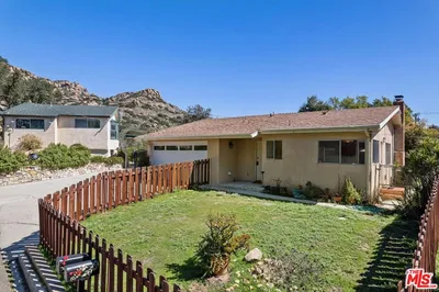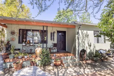 Welcome to Lake Manor! This beautifully updated two bedroom, one bathroom home is your own private retreat with amazing views. Updated kitchen with newer cabinetry, granite counters with subway tile backsplash, stainless appliances, vaulted ceilings, recessed lighting, and a skylight for plenty of natural light. The living room has wood floors, vaulted tongue & groove ceiling, french doors to the side yard and a ''wall of windows'' with amazing views of the surrounding mountains. The primary bedroom has a ''Romeo & Juliet balcony'' w/french doors for beautiful morning views right from your bed! Small hallway nook off the secondary bedroom can be used for a cozy desk area. The bathroom has been updated with a subway tile surround shower/tub, shiplap ceiling, & recessed lighting. Features include newer roof (completed in 2023), newer dual pane windows, newer split A/C, newer interior & exterior paint, ceiling fans, and recessed lighting, Attached, oversized single car garage is currently being used as an entertainment area w/custom bar and storage space. Private driveway can fit 3-4 cars, garage can still accommodate single car parking. Private front yard w/porch area and side yard, both w/low maintenance landscaping. This serene escape is just minutes from shopping, the freeway, and restaurants.