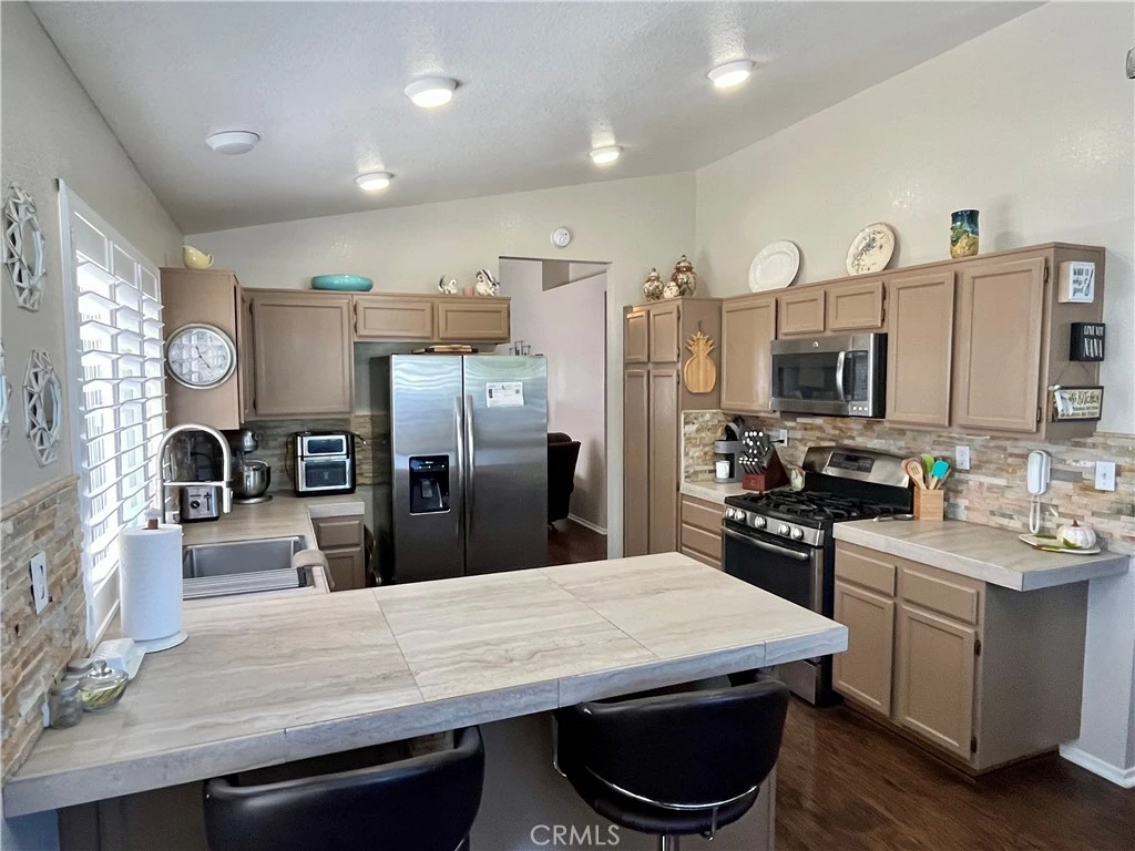 Don't miss out on this beautifully maintained home located in the desirable Highland Springs Country Club of Cherry Valley. This spacious home features a beautiful updated kitchen with newer stainless steel appliances, breakfast bar, and plenty of cupboard space. Off the kitchen you will find the dining room area perfect for large parties or entertaining guest. Also, there is a separate living room to relax and unwind after a long day in front of the gas fireplace. The master suite is generously sized with a walk-in closet and a sliding glass door leading out to the backyard. Both bathrooms feature quartz counter tops and tile flooring, low flow toilets, with double sinks in the master bath. Other features include ceiling fans in all living areas and both bedrooms, laminate flooring in all the high traffic areas with only carpet in the bedrooms, and custom window blinds and coverings on every window. The back yard is thoughtfully landscaped for easy maintenance and wonderful views of both Mt. San Jacinto and Mt. San Gorgonio. A patio the length of the home, with pavers, hardscape, and fruit trees. Don't let this special home pass you by!