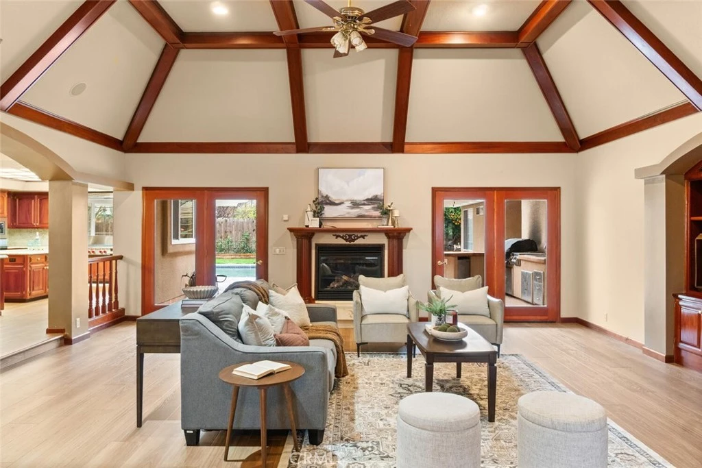 This well-built North Chico home offers thoughtful design, quality finishes, and spaces that truly work for everyday living and entertaining. Inside, you’ll find new LVP flooring throughout, architectural archways, exposed beam ceilings, and a spacious living room with a cozy fireplace. The kitchen is both functional and stylish, featuring granite countertops, custom wood cabinetry, a Wolf gas cooktop, Sub-Zero refrigerator, large center island, walk-in pantry, and breakfast bar. A formal dining room sits nearby, along with an additional formal living space that adds flexibility for hosting or gathering. A dedicated office with built-in shelving provides a comfortable work-from-home setup. The primary suite offers a private retreat with backyard access, walk-in closets, dual vanities, and a tiled walk-in shower. Three additional bedrooms are generously sized, and the home also includes ceiling fans throughout, an indoor laundry room, and an attached three-car garage. Recent upgrades include a newer furnace, air conditioning system, and water heater, adding peace of mind and efficiency. Out back, the property is designed for year-round enjoyment with a covered patio, Pebble Tec pool, outdoor kitchen and bar, plus a storage shed and garden area. Located in a desirable North Chico neighborhood, this home combines comfort, function, and standout amenities in one complete package.