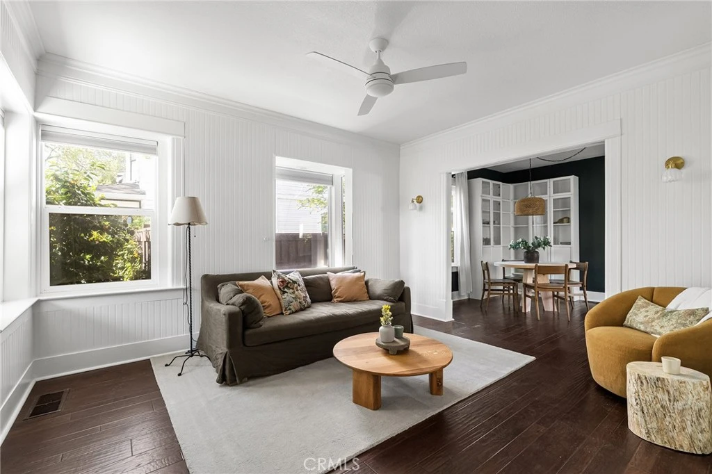 Classic charm meets modern comfort with a coastal cottage farmhouse vibe in the highly sought-after Barber Neighborhood! This beautifully updated home blends timeless character with thoughtful upgrades, offering two bedrooms, two bathrooms, and a detached garage with a versatile bonus room. Step inside to a light-filled living room featuring beadboard walls, high ceilings, and crown molding—perfect for relaxing afternoons. The space flows seamlessly into a spacious dining area, ideal for entertaining. The updated kitchen shines with quartz countertops, stainless steel appliances, refreshed cabinetry for abundant storage, updated flooring, and a convenient laundry area, all with easy access to the backyard. The true centerpiece of this property is the outdoor oasis—lush, inviting, and full of mature plants and trees. Included chicken coop or garden area and small swimming pool-ice bath. The detached bonus room adds incredible flexibility—perfect for a home office, yoga studio, playroom, or personal gym. Additional highlights include a newer roof, dual-pane windows throughout, fresh interior and exterior paint, central heating and air, ceiling fans, detached garage, and off street parking that enhances the home’s curb appeal. This move-in ready gem offers comfort, style, and versatility—don’t miss your chance to make it yours!