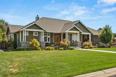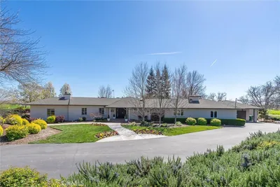 This one-of-a-kind property feels like a world of its own—peaceful, private, and just minutes from town. Set on 5.69 acres with approximately 600 feet of creek frontage along Butte Creek, it offers a rare mix of natural beauty, thoughtful design, and timeless character. A gated entrance leads to a circular drive, ornamental fountain, and tranquil koi pond that set the tone for what’s inside. The main home features five bedrooms and four bathrooms, with hand-carved wood doors, wood-beamed ceilings, architectural arches, and a blend of brick and tile flooring. The split floor plan includes built-ins throughout, multiple terraces, and large picture windows that frame views of the grounds, treetops, pool, and even the Sutter Buttes in the distance. Enjoy morning coffee or evening wine from one of the many balconies, where the sound of Butte Creek drifts through the trees. The pool and hot tub are tucked into beautifully landscaped surroundings, giving the outdoor space a garden-like feel. There's also a private beach area right on the creek—perfect for hosting or unwinding. The remodeled guest quarters now feature a full kitchen, full bathroom, living area, private entrance, and a fenced yard, offering complete flexibility for guests or extended stays. It also includes a loft, living area, and a wood-burning fireplace. Other highlights include a detached two-car garage, owned solar, pressure tank and generator for the well, a workshop area, fruit trees, a small orchard, and a protected wildlife preserve just across the creek that ensures privacy and open views for years to come. Originally built by Gene Henning, the home reflects craftsmanship and detail at every turn. Whether you're entertaining, relaxing, or simply enjoying the peaceful setting, this property offers the feeling of a private retreat—without giving up convenience.