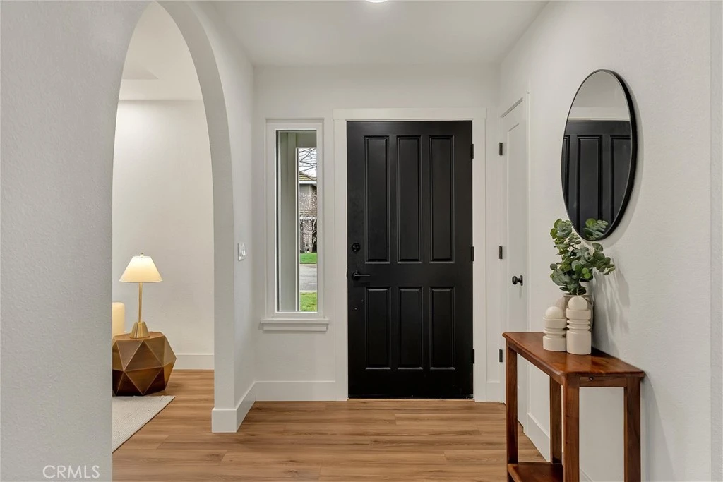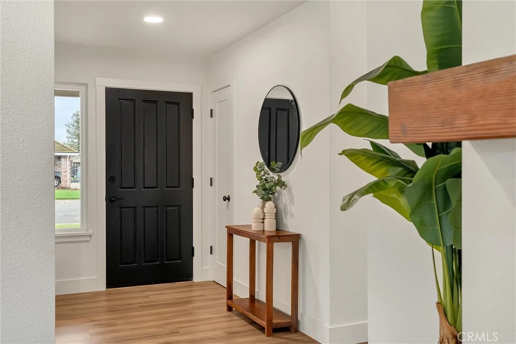 Step into a beautifully updated 4-bedroom, 2-bath home where home situated on a large in-town lot, conveniently located just minutes from schools, shopping, and parks. Extensive renovations were completed approximately 2½ years ago by the previous seller. At that time, the exterior received fresh paint, creating inviting curb appeal that sets the tone for what awaits inside. Upon entry, an arched doorway leads into the formal living and dining areas, where large windows fill the space with natural light and highlight the freshly painted interior. In the family room, a striking white fireplace with wooden mantle and electric insert serves as a warm and welcoming focal point. Tray ceilings and abundant windows enhance the open, airy feel throughout. The fully remodeled kitchen, completed during the prior updates, seamlessly connects to the family room and features quartz countertops, a center island, custom cabinetry, updated appliances, and a farmhouse sink—ideal for both everyday living and entertaining. The spacious primary suite offers a peaceful retreat with a remodeled ensuite bathroom showcasing dual sinks and a walk-in shower with subway tile surround. The guest bathroom was also beautifully remodeled at that time with carefully selected finishes and fixtures. Additional improvements completed approximately 2½ years ago include newer flooring throughout, updated baseboards, doors, door hardware, and trim, modernized light switches and outlets, LED exterior lighting, and a retextured and painted garage. A whole house fan ensures optimal ventilation. Gutter guards were installed helping reduce maintenance. The landscaping was refreshed with new bark, and the property offers RV parking with 30 amp hookups for added flexibility. And to top it all off with OWNED solar adding valuable energy efficiency to this thoughtfully upgraded home. Move-in ready with major improvements already in place.