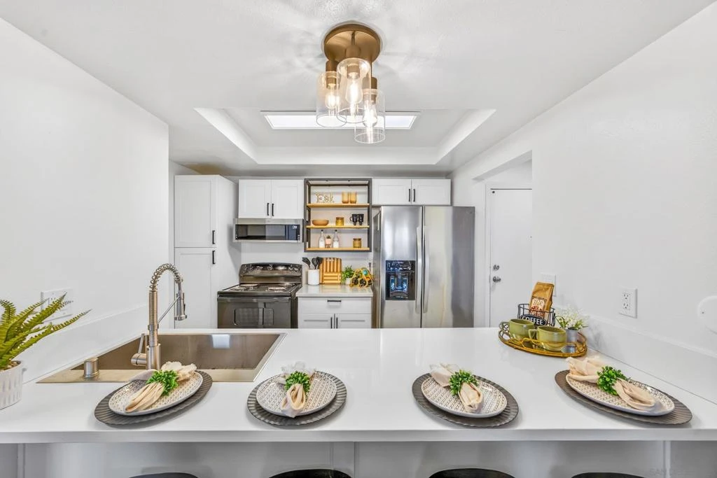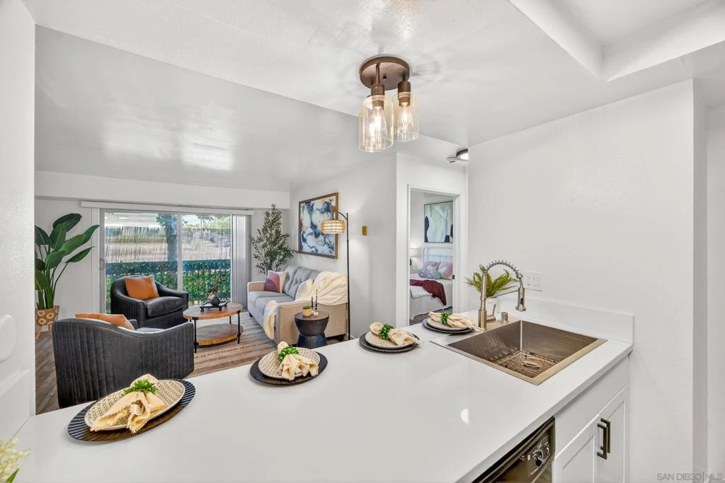 VA Approved!! Welcome to your modern, move-in-ready 2-bedroom, 2-bathroom condominium in the heart of Chula Vista! This bright, first-floor unit (936 sq. ft.) offers a sleek minimalist style designed for comfort and effortless living. Step into an updated kitchen featuring pure white quartz prefab slab and smaller green-vein natural quartzite slab countertops, an electric stove, and sleek cabinets. Enjoy the rare convenience of an in-unit stacked washer and dryer. Both the guest and master bathrooms have been refreshed with new medicine cabinets, mirrors, and lighting for a clean, contemporary feel. The spacious living room opens through sliding glass doors to a private balcony, perfect for morning coffee. It includes all 3-ft-wide doors (excellent for accessibility), one assigned parking space in the rear, and low-maintenance living at its best. Corner unit sharing only one wall. Model match sold for $459,000 in April 2026. The HOA takes care of water, sewer, trash, and hot water. Ready for immediate move-in — this condo is a fantastic opportunity for first-time buyers, veterans, or anyone seeking convenient, living in Chula Vista. Don’t miss it!