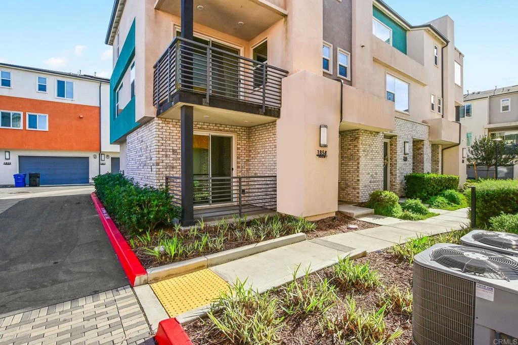 A CORNER LOT WITH POOL VIEW, ONLY ONE SHARED WALL.. FHA AND VA APPROVED!! Welcome to this stunning corner townhome with pool views, located in the highly sought-after Millenia community of Otay Ranch. This rarely available three-story residence offers a bright and airy open floor plan designed for today’s lifestyle, seamlessly blending the living, dining, and kitchen spaces for effortless entertaining. The beautifully appointed kitchen showcases quartz countertops, classic shaker cabinetry, and stainless steel appliances. PAID SOLAR AND WATER SOFTENER. Sunlight streams through expansive windows and the private balcony off the living area, accentuating the impressive custom stacked-stone feature wall. This energy-efficient home includes paid solar, tankless water heater, water softener helping keep monthly costs low. The first level features a private bedroom and full bathroom with its own patio—perfect for guests, a home office, or extended family living. The upper level offers three additional bedrooms, highlighted by a generous primary suite with a walk-in closet and a spa-inspired en-suite bathroom. A conveniently located laundry area completes the top floor. Enjoy access to exceptional community amenities including a resort-style pool, parks, dog park, and community garden. Ideally situated just minutes from Otay Ranch Town Center, shopping, dining, and major freeway access. The sellers are open to offering concessions, depending on the terms of the offer.
