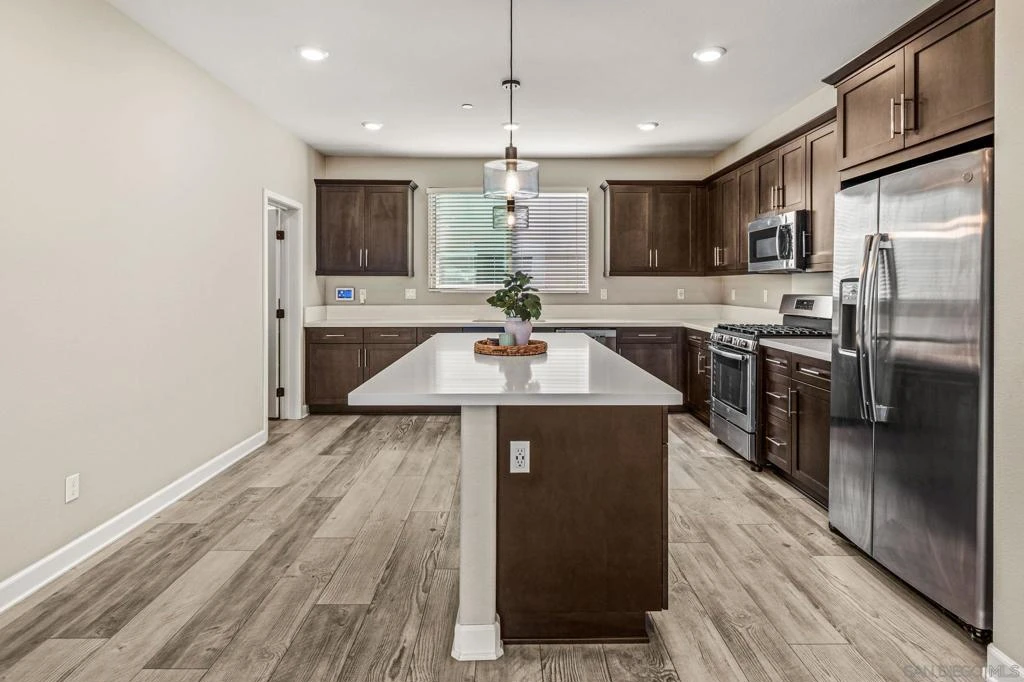 Welcome to this beautiful 3-story townhome in the highly desirable Millenia community, where modern living meets thoughtful design in a vibrant, purpose-built neighborhood. This 4 bed, 3.5 bath home offers a versatile floor plan with a first-floor bedroom and its own en-suite—perfect for guests, a private home-office, or multigenerational living. The open-concept main level features quartz countertops, shaker cabinets, and durable vinyl wood plank flooring throughout the first and second floors. Upstairs, you'll find the primary bedroom and en-suite, 2 additional bedrooms and full bathroom, along with the convenience of an in-home washer and dryer. Enjoy modern conveniences including smart home features, a whole-house water softener and filtration system, solar, and wired WiFi throughout. An attached 2-car garage is complemented by ample street and guest parking. Beyond the home, Millenia offers resort-style amenities including a pool, parks, community garden beds, and multiple recreation areas featuring picnic spaces, BBQ grills, and games like cornhole, ping pong, foosball, and horseshoes. Residents also enjoy access to tennis, pickleball, and basketball courts. Millenia is conveniently located near shopping, dining, hiking trails, and Otay Ranch Town Center. Welcome to this beautiful 3-story townhome in the highly desirable Millenia community, where modern living meets thoughtful design in a vibrant, purpose-built neighborhood. This 4 bed, 3.5 bath home offers a versatile floor plan with a first-floor bedroom and its own en-suite—perfect for guests, a private home-office, or multigenerational living. The open-concept main level features quartz countertops, shaker cabinets, and durable vinyl wood plank flooring throughout the first and second floors. Upstairs, you'll find the primary bedroom and en-suite, 2 additional bedrooms and full bathroom, along with the convenience of an in-home washer and dryer. Enjoy modern conveniences including smart home features, a whole-house water softener and filtration system, solar, and wired WiFi throughout. An attached 2-car garage is complemented by ample street and guest parking. Beyond the home, Millenia offers resort-style amenities including a pool, parks, community garden beds, and multiple recreation areas featuring picnic spaces, BBQ grills, and games like cornhole, ping pong, foosball, and horseshoes. Residents also enjoy access to tennis, pickleball, and basketball courts. Millenia is conveniently located near shopping, dining, hiking trails, and Otay Ranch Town Center.