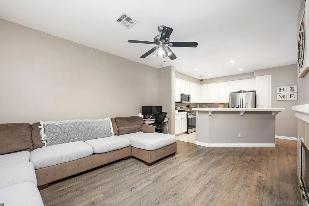 Welcome to this well-maintained tri-level townhome offering approximately 1,400 sq. ft. with 2 bedrooms, 2.5 baths, and a 2-car garage. The first-floor flex room is ideal for an office, gym, or guest space. Enjoy laminate flooring, an upgraded kitchen with stainless steel appliances, and updated bathrooms. The main living area features a cozy fireplace and private balcony. The primary suite includes a walk-in closet, dual sinks, and an upgraded tub. Central A/C adds year-round comfort. Located in the Treviana community with pool and gym amenities, close to award-winning schools, parks, trails, and Otay Ranch Town Center, plus dining and entertainment.