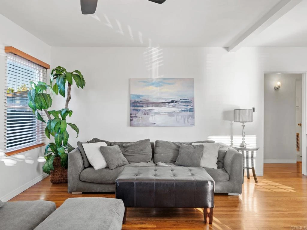Welcome to this inviting single-story home tucked away on a quiet cul-de-sac in North Chula Vista, just minutes from the energy of Downtown and Memorial Park. This residence offers 2 bedrooms and 1 bathroom, providing flexible living options ideal for remote work, a home business, or multi-generational living. The interior features hardwood floors, a functional open layout, and custom cabinetry throughout. The updated kitchen includes white shaker cabinets and stainless steel appliances, while the renovated bathroom features a tiled shower. Additional upgrades include newer plumbing, modern lighting, ceiling fans, and heating and air conditioning for year-round comfort. Outside, the spacious, usable lot is perfect for relaxing or entertaining, complete with mature citrus trees and raised garden beds. A detached garage with washer and dryer hookups is ready for you to use. The extended driveway provides parking for up to three vehicles, plus ample street parking. With easy access to both I-5 and I-805, commuting to Coronado, the 32nd Street Naval Base, Downtown San Diego, and nearby beaches is effortless.