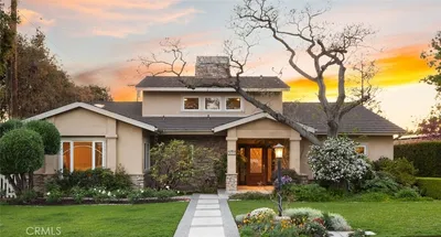 HISTORIC GATED ENGLISH CHÂTEAU ESTATE WITH GUEST HOUSE. Designed by C.T. Stover with redwood construction for the Pitzer College family circa 1929. Beautiful European Storybook architecture inside and out. Over 1/2 acre of picturesque grounds. Main home approx. 3,275 sqft. with 4 bedrooms & 3 baths (1 bedroom & 2 baths downstairs), primary master suite with fireplace, living room with fireplace, dining room, and huge Great family room (over 600 sqft) with impressive stone fireplace! Spacious, light-filled renovated kitchen with granite stone floors, Quartz countertops, self closing cabinets, and eating nook. Enjoy light neutral decor and extensive oak hardwood floors plus copper re-piping. Inside laundry. Approx. 840 sqft. Guest House / ADU with living room, kitchen, sleeping loft, & bath. Newer 3-car garage. Property boasts multiple patio areas, tranquil gardens, fruit trees, & fish pond. Additional private cul-de-sac property access also via Blue Mountain Way at south side. This location is truly ideal — enjoy easy access to Claremont’s top-rated schools, The Village’s shops and restaurants, local parks, hiking trails, and convenient freeway connections. Whether you’re looking for a move-in ready home or an investment opportunity, this amazing gem offers incredible versatility and value in one of Southern California’s most sought-after communities.
