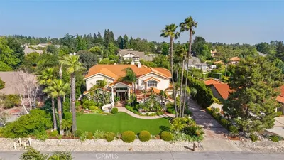 Grandeur Hacienda Estate in Claremont with Spectacular Mountain Views! This custom-built estate, constructed in 1989, features a grand entrance and an enchanting garden with meticulously manicured landscaping. Nestled in the sought-after North Claremont area—one of the most desirable locations in greater Los Angeles. The house embraces Modern Spanish Hacienda design, with red clay roof tiles, white stucco walls, and an intimate courtyard adorned with an ornate water fountain—a perfect gathering spot for family and friends. The unique style reflects the essence of Southern California living. The landscaping showcases years of cultivation and pride of ownership. Notably, two giant stone monoliths from Japan add peace and tranquility. The backyard includes a large swimming pool and spa, a Sauna, a separate shower and bathroom area, and abundant vegetation and fruit trees. Inside, the house boasts six bedrooms and five baths, all very spacious. Vaulted ceilings, ample natural light through custom windows, a family room fireplace, a gourmet kitchen, separate dining and living rooms, wood flooring, and a classic glass chandelier enhance the interior. Practical amenities include a four-car garage, fully paid-for solar panels, high-end security with a camera monitoring system, and more. Conveniently located near The Webb Private School and Award-winning 9 Points Claremont High School, Wilderness walking trails, parks, and the Claremont Village shopping center, this property offers a complete package for discerning buyers.