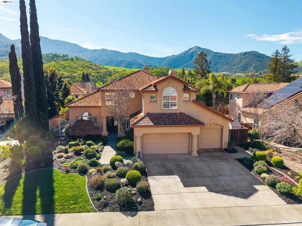 Breathtaking views of Mt. Diablo with an exceptional court location. Five bedrooms (full bed and bath downstairs) & 3 baths. Remodeled kitchen features custom cabinets, induction stove, gorgeous granite countertops & backsplash, recessed lighting, a large center island, separate coffee/entertaining bar, a convenient eating area & a nice pantry closet. The open floor plan includes a family room with gas fireplace, living room, formal dining room with vaulted ceilings & separate laundry room. Large and private owners suite includes a spacious walk in closet, soaking tub, and gas fireplace. Other features of this home include rich oak plank hardwood flooring downstairs, impressive center staircase, gorgeous front doors, plantation shutters. Large 3 car garage. New $50,000 solar panel system creates awesome results, new Bosch HVAC system. Professional landscaping w/ automatic irrigation & lighting, lap pool w/spa (with amazing views). Numerous upgrades! Easy access to schools, walking paths, Mt. Diablo State Park& downtown Clayton.