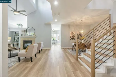 Welcome to this beautiful 2-story home in Clayton’s coveted Black Diamond community. Light-filled and thoughtfully designed, this residence features soaring ceilings, a formal living room with an elegant two-sided marble fireplace, and a welcoming dining area perfect for hosting gatherings. The spacious eat-in kitchen includes a center island, generous cabinetry, a charming bay window, and direct access to the patio, creating an effortless indoor-outdoor flow ideal for entertaining or everyday enjoyment. Gleaming hardwood floors add warmth and continuity throughout the main living spaces. The first-floor bathroom has been tastefully updated and includes handicap-accessible features, offering both style and function. Upstairs, the expansive primary suite showcases vaulted ceilings, dark wood flooring, a luxurious ensuite bath with marble floors, and an oversized walk-in closet. Step outside to a secluded backyard retreat, surrounded by mature trees and professionally landscaped greenery—perfect for al fresco dining or relaxing under the stars. Residents enjoy nearby access to the community pool and spa, scenic parks, highly rated schools, local trails, Oakhurst Country Club, golf, tennis, and the charm of downtown Clayton.