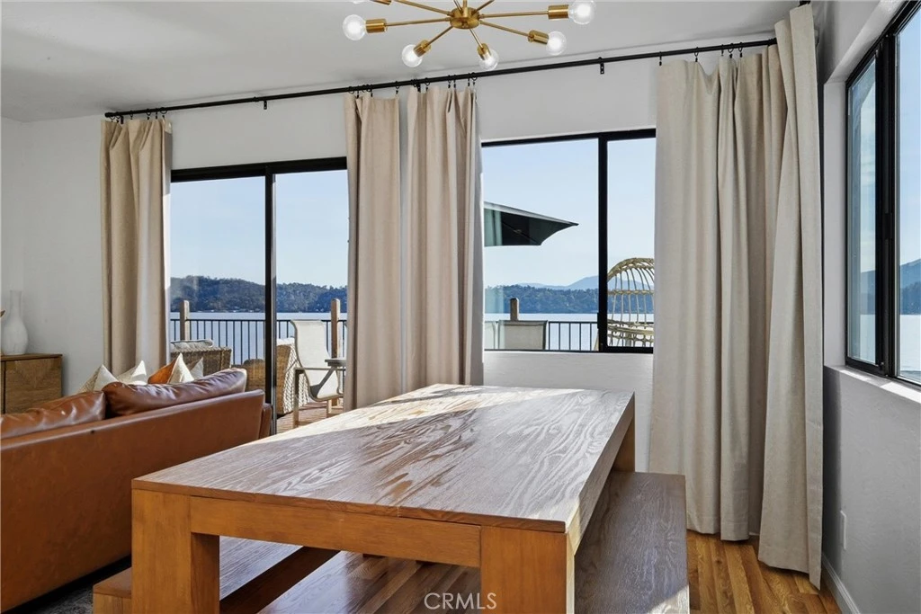 Just bring your boat! This turn-key 3bed/3bath LAKEFRONT home on the shores of Clear Lake is all ready for summertime, complete with a fresh renovation. Designed with a classy modern touch, this waterfront getaway features solid hardwood flooring, fresh light paint, open kitchen with quartz slab counters, and tons of windows all facing out over the water and Mt. Konocti for some of the best views around from sunrise to sunset. Large back deck off of the living area for entertaining plus a lower covered patio to walk right out onto your private pier and newer dock (with steel pilings!) Upper level includes the primary bedroom/bath, living area, kitchen & guestroom/bath. Entry level presents a second living room/game room with the third bedroom and full bathroom & laundry. Could be converted back into garage if needed in the future. Just a perfect set up for the entire family or for short term rental investment. Gorgeous (professionally staged) furniture & decor to be included for fair offer. Sale includes vacant lot across road (bonus parking/storage) and even a boat launch & beach area a few homes down with NO HOA costs. Paddleboard right off the beach/dock, absolute gem of a lakefront home!