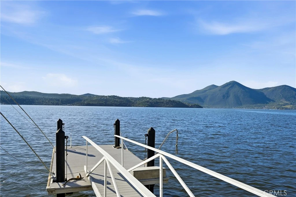 Peaceful Lakefront Retreat with the best panoramic views of beautiful Clearlake and Mt. Konocti. Situated in Oak Cove, this two-story private residence offers versatility as an income generating vacation rental or occupy for your own personal use (or both). Each level provides an individual living space with it's own private entrance and has been updated on both levels with custom finishes including stone fireplaces, LVP flooring, tiled bathrooms, cabinetry and lighting! The second level was previously operated as a short-term rental and offers open concept living with 3 bedrooms/1 full bath, a galley style kitchen, laundry room, and living room with attached deck to soak in the spectacular views. The main level is currently used as a primary residence and includes 2 bedrooms/1 bathroom, an extra storage room, and open concept kitchen/living room design. There is plenty of room to entertain on the oversized patio out front and enjoy fishing and/or swimming off your private pier with attached floating dock. The low-maintenance patio also includes a fire pit area and included spa for ultimate relaxation. Situated on over 60' of lakefront seawall, including a rock jetty, this property adjoins a protected marina next door for additional temporary parking for boats and/or other small vessels. Located less than 10 min from nearest boat launch and other amenities, this property is the epitome of lake living at it's finest.