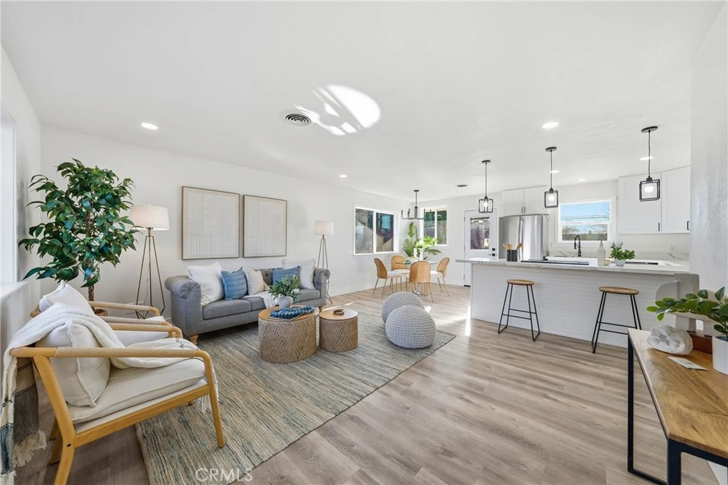 This completely remodeled three-bedroom, one-and-a-half-bathroom home offers 1000 square feet of thoughtfully updated living space. The comprehensive renovation showcases quality craftsmanship throughout, with a new metal roof, replacement windows, and fresh interior and exterior paint, creating a move-in-ready atmosphere. The heart of the home centers on an open-concept design that connects the kitchen and living areas. The kitchen impresses with new cabinetry, granite countertops, and modern appliances, creating an ideal space for both daily meals and entertaining. New vinyl plank flooring flows seamlessly throughout the interior, while the completely remodeled bathroom features attractive tile flooring and a new vanity. The outdoor space truly shines with its expansive concrete patio, perfect for relaxation and gatherings. Synthetic turf eliminates yard maintenance while maintaining a green, welcoming appearance year-round. A charming flower box adds a touch of natural beauty, and the completely fenced yard provides privacy and security for families and pets. Clearlake's established residential neighborhood offers convenient access to daily necessities and recreational opportunities. Walmart/ Big 5 offers nearby shopping, while Clearlake Schools serve local families. Clear Lake Campground offers outdoor recreation just minutes away, and the area's natural environment provides a peaceful setting away from urban congestion. The new concrete driveway adds both functionality and curb appeal to this well-maintained property. With every major system and surface recently updated, this home presents an exceptional opportunity for buyers seeking modern comfort in a serene lakeside community. The combination of quality improvements and desirable location creates lasting value for discerning homeowners.