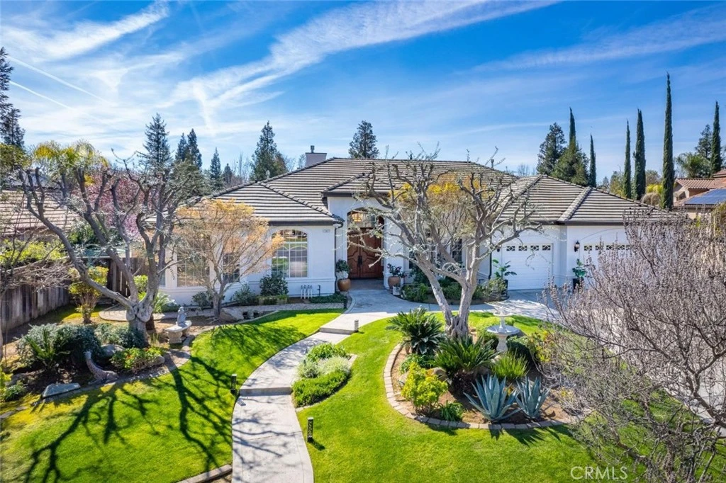 Experience the unparalleled lifestyle of Monte Verdi Estates in Clovis a prestigious gated community where privacy and elegance meet everyday luxury. Enjoy this beautifully maintained home on approx. 17,400 foot lot featuring OWNED solar with NEM 2 benefits offering both efficiency and long-term value. From the moment you arrive, the gorgeous curb appeal and meticulously landscaped grounds set the tone. A stunning double-door entry welcomes you into a thoughtfully designed interior highlighted by arched doorways, custom trim casings and built-ins in the family room. The chef's kitchen offers extensive storage, custom cabinetry, granite countertops, stainless steel appliances, a five-burner gas stove, breakfast bar, large pantry, and an oversized dining nook with direct backyard access. A formal dining room provides the perfect setting for gatherings and entertaining. The primary suite features two spacious closets, large soaking tub and a double vanity. A dedicated office with functional built-ins and a versatile bonus room provide flexibility for work or recreation. The laundry room includes cabinetry, a utility sink, and exterior side-yard access. Situated on a quiet cul-de-sac with no rear neighbors, the private backyard retreat includes mature fruit trees, a wide side yard (potential RV parking), covered patio, sparkling pool, and a firepit gathering area ideal for relaxing or entertaining. Located within the award-winning Clovis Unified School District and close to parks, shopping, and dining, this property blends luxury finishes, privacy, and energy efficiency in one exceptional home. Behind the private gate, residents enjoy serene green belts that wind through the neighborhood, perfect for leisurely walks, peaceful views, and a sense of open space. Stay active and social with exclusive access to tennis courts, ideal for friendly matches or staying fit right at home. This exclusive enclave combines custom homes on generous lots with a secure, tranquil setting, offering the perfect blend of sophistication, recreation, and community in one of Clovis' most desirable neighborhoods.