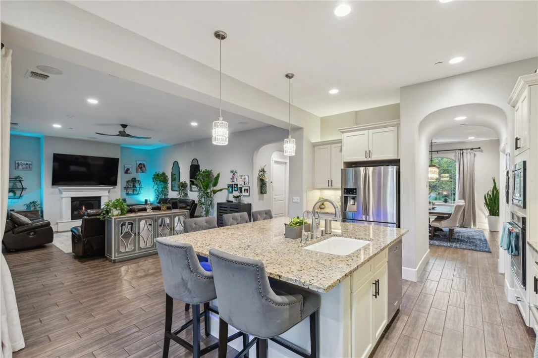 Welcome to this exquisitely upgraded single-story ranch-style home with 10-foot ceilings that seamlessly blend modern convenience, smart technology, and stylish comfort. Inside, you’ll find elegant plantation shutters, a Pentair whole-house water softening system, and a 4-stage reverse osmosis water dispenser at the kitchen sink. The kitchen also features concealed cabinet outlets for above-cabinet lighting. Living spaces are enhanced by a contemporary bar with backlit glass shelves, a crystal chandelier in the dining room, and a child-safe gas fireplace. Entertainment and connectivity are seamless with built-in ceiling surround sound speakers, wall-mounted TV trunking, and two hard-wired 2.4+5 GHz Wi-Fi nodes for strong mesh coverage. Comfort is prioritized with five upgraded ceiling fans and bidet outlets in the primary and Jack & Jill restrooms. The garage includes a 220V-3Phase circuit ideal for a split-unit AC or heater. Security features include a seven-zone alarm system, four motion-activated cameras, impact detectors, motion sensors, and secondary security screen doors at the front and patio. Bedroom windows can be armed while open, and sealing brushes on the garage door help limit dust intrusion. The professionally landscaped front yard includes two irrigation zones, Palo Verde trees, a courtyard fountain, a custom backlit house number, and upgraded sconces. In the backyard, enjoy low-maintenance, non-deciduous plants across three irrigation zones, a 20’x20’ grass area for pets, and a stunning 40’x20’ saltwater pool and spa with a shallow lounge area, in-pool umbrella inserts, an ultra-quiet sweeper, and adjustable spillway. The expansive 42’x22’ covered patio features a built-in 36” professional grill, bar seating for ten, two stainless steel under-counter refrigerators, oversized ceiling fans, flush-mount lighting, and pre-wired outlets for Wi-Fi or speakers. Lighting spans the front and back yards with capacity for 30+ additional fixtures. Pool equipment and AC are discreetly enclosed. The owned 24-panel 8KW solar system is completely hidden from view. A 12’x14’ pergola sundeck offers an adjustable louvered roof, privacy shades, and netting. Two exterior gas stubs and a hard-wired outdoor Wi-Fi node ensure this home is as functional as it is beautiful. LIVE your DREAM in this luxurious HOME!
