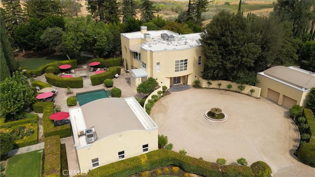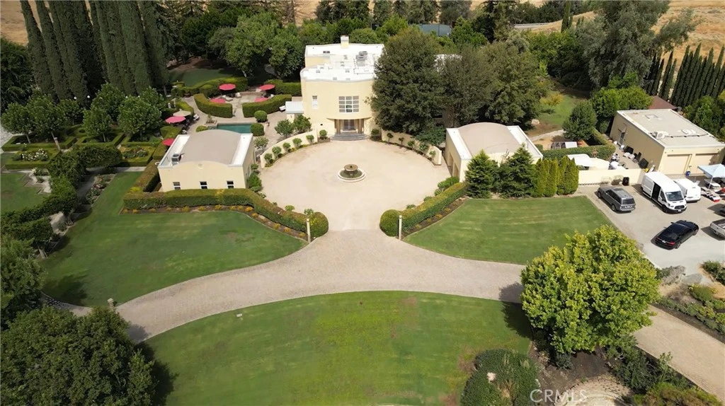One-of-a-kind Palladian estate known as The Villago, set on nearly 10 acres with breathtaking views, unforgettable sunrises and sunsets, and over 200 owned solar panels (most of the panels are newer) for remarkable efficiency. Built in 1988, this extraordinary 6,424+/- sq. ft. multi-level home offers 5 bedrooms and 5 bathrooms surrounded by thoughtfully updated HVAC, mini splits, electrical, irrigation, updated French drains, and ponds. The grounds feature leveled brick paths, scenic trails, mature trees, two ponds with fountains, and a private tennis court with LED lighting. EV charging capability in the garages plus a 50-amp RV hookup. Updated circuit board and pump equipment the septic and well also serves a great cost-effective home. The grand entry draws you into a stunning living space framed by floor-to-ceiling views of nature and multiple French doors opening to the exterior grounds. An elegant oval dining room with private doors creates the perfect setting for intimate dinners or meetings. The kitchen showcases panoramic views of the pool and landscape, a cozy breakfast nook, and ideal flow for hosting. Multiple flexible spaces throughout the home offer options for offices, gatherings, or quiet retreats, plus an impressive laundry room. Just upstairs, the oversized primary suite is a sanctuary with exterior access, heated floors, floor-to-ceiling windows, a jaw-dropping closet, spa-like bathroom with soaking tub, walk-in shower, extended vanity, and abundant storage. Additional upper levels include a library/office that can convert to a bedroom, loft-style spaces overlooking the grand living room, private bedroom suites with their own bathrooms, and a unique observatory-style sitting area to take in the views. Entertain in style with sitting area including outdoor speakers throughout the property, a temperature-controlled wine cellar and tasting room adorned with custom murals. Outdoors, enjoy the pool with outdoor shower and a detached guest quarters offering TWO private bedroom suites beside the pool. Two detached 4-car garage buildings with climate-control mini splits provide incredible versatility for hobbies, business, media, or storage. Fire department quick hookup available by the pond. A rare estate where architecture, nature, privacy, and functionality come together in a truly unforgettable setting. Bedroom count and sq ft may reflect differently on tax records. Buyer to verify all information to their satisfaction.