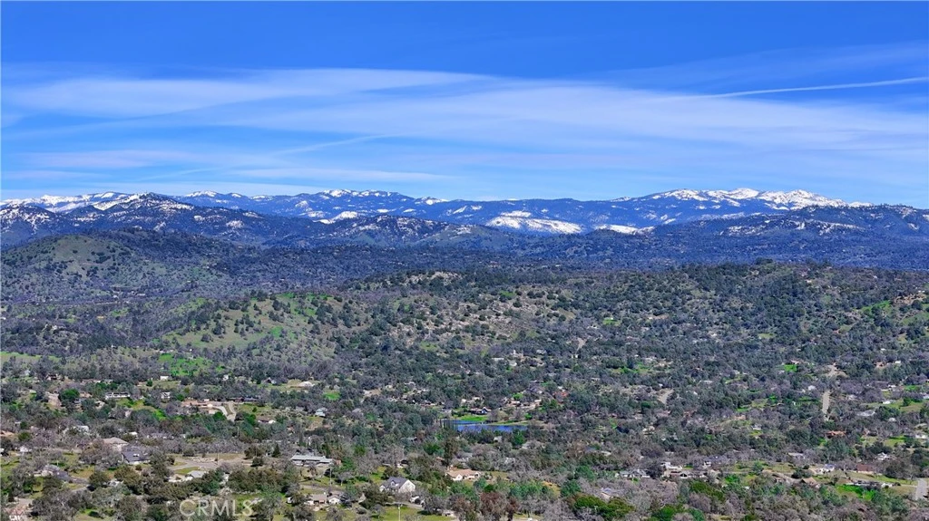 Single-story custom home on over 5 private acres offering panoramic, unobstructed 180-degree mountain and sunrise views. Built in 2015, this 3,986 sq ft residence features 5 bedrooms and 4 bathrooms, including a separate furnished guest house with bath (included in count), along with two large, dedicated office spaces ideal for remote work or multi-generational living. The home is filled with expansive windows in every room, bringing in abundant natural light and capturing scenic views throughout. The main living area showcases dramatic 16-foot floorto-ceiling windows framing the surrounding landscape and an impressive gas fireplace. Spacious eat-in kitchen includes granite countertops, abundant cabinetry, and a large walk-in pantry. The primary suite offers a spa-like en suite bath with steam shower, soaking tub, dual vanities, and a generous walk-in closet. A second primary suite includes its own en suite bath and walkin closet. Neutral finishes throughout make the home move-in ready. A gently winding private driveway approximately one-tenth of a mile from the main road leads to the home, enhancing privacy and creating a quiet, secluded setting. Notable features include metal roof, fire-resistant siding, fire sprinklers, fire-rated windows, and owned solar. Additional amenities include a private gated entry, three-car garage with separate workshop waterfall fountain at the entry, and low-maintenance natural landscaping with drip irrigation. Property is ideally situated above the fog and below the snow, offering privacy, scenic beauty, and comfortable year-round living.