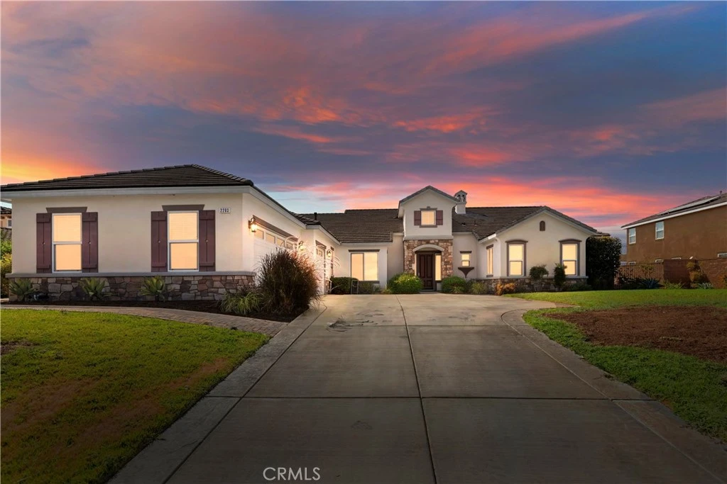 Stunning, sought-after, single-story, Crystal Ridge home! Almost 3100 SF of luxury living. You've realized your dream when you open the stately entry door to the elegant foyer. Dramatic architecture compliments this beautiful single story. The spacious Great Room is nothing short of grand w/ large picture windows & PANORMAIC views that go on forever! The backyard boasts a large pool, with plenty of space for back-yard barbeques. Impressive, raised hearth, corner fireplace &media niche w/state-of-the art wiring, including pre-wire for surround sound & security system. Sunny breakfast nook opens to the kitchen w/French door leading to the large covered, patio. The kitchen is an epicurean delight w/huge center island/breakfast bar, including a vegetable sink. Beautiful wood-carved corbels, and enhanced cabinetry w/crowning and recessed lighting. The walk-in pantry, upgraded double oven w/convection,5 burners continuous-grate range, and hidden-control multi-cycle dishwasher are just a few of the upscale kitchen features. And that's not all! Recessed cabinetry nook and large, separate formal dining room, ample for a large gathering. The generous master suite has an adjoining bath with a jetted soaking tub, a compartmentalized shower, and an enormous master closet (the size of a secondary bedroom!). The indoor laundry room comes complete with a sink and mud room! AND THAT'S NOT ALL! PAID SOLAR to keep those energy costs down! Don't miss this one!