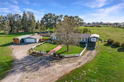 WELL HELLO BEAUTIFUL!! Welcome to 23580 Loleta. Nestled behind an ancient olive grove is this fantastic home boasting 2658 square feet. The well is an impressive 350 feet deep and the solar is PAID FOR, what a bonus on your electric bill. Step up into up into the entry way sand you will be impressed right away. There are two great sized rooms on either side of the formal entryway, each of which would make a great guest suite. The other room could be used as many things, a bar, exercise room, playroom and more. The living room is open concept to the dining area and kitchen. Love to cook? The kitchen is absolutely gorgeous with ample prep, storage and cupboard space. The island is a fantastic size (perfect to put plenty of people around) and the crisp white granite really looks beautiful. Just off the kitchen is the walk-in pantry (storage galore). Each of the bedrooms are a great size and the guest bath also has double sinks (great for 2 people to get ready at the same time). The master bedroom is really nice boasting not just one but 2 walk in closets. The master bathroom is large and has double vanities and soaker tub with nice sized stand-up shower. Most of the home has beautiful wide planked wood laminate flooring throughout with the exception of the bedroom which has carpet. The mudroom is a pleasant surprise with a nice size soaker sink, added storage and a bar to hang your close. This amazing place flows nicely with its vaulted ceilings and natural light that streams throughout. Imagine sitting on your back porch watching the continuing nature that strolls by. Plenty of Dove, Turkey, Quail etc.. The 10 acres of land is level and very usable. Fun fact, there is a huge, covered party area that should surely accommodate a large Croud. There are several outbuildings outside and even an ADU. Some of the best features outside is the brand-new driveway and parking area. This place is absolutely set up for entertaining. If you like to garden there is plenty of outdoor space to do so but there is a greenhouse for any inside gardening, you would like to do. You have got to see it to believe it. Call for an appointment today.