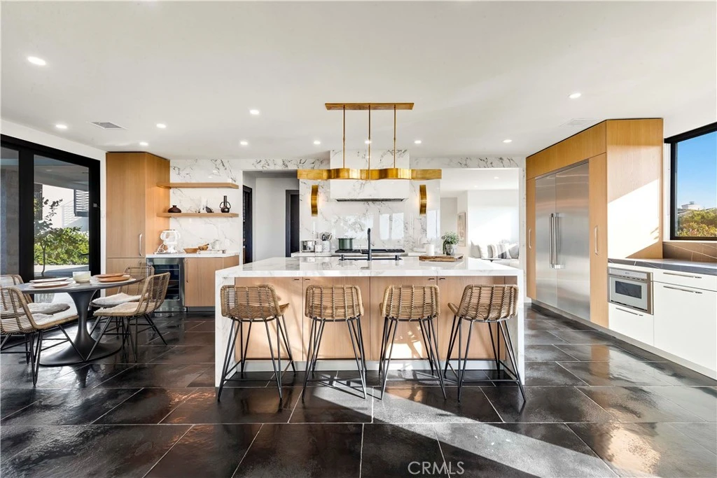 This fully remodeled Harbor View Hills estate offers some of the most breathtaking panoramic views in all of Newport Beach and Corona del Mar. From the Pacific Ocean and Newport Harbor to the iconic Balboa Pier and Pavilion, Fashion Island, and even the Los Angeles skyline on a clear day, the vistas from this rare property are simply unforgettable. A gated walkway lined with fragrant lemon trees leads to a tranquil courtyard where a sparkling pool and spa create a private resort-like setting. A grand entry welcome you inside, where expansive living spaces are designed to capture the home’s extraordinary coastal views from the moment you enter. The main residence features four spacious bedrooms, three full bathrooms, and a guest powder room. Above the three-car garage, a versatile fifth room with its own full bathroom and walk-in closet offers the perfect space for a guest suite, office, gym, or recreation room. At the heart of the home is a chef’s kitchen with top-of-the-line finishes, a built-in breakfast nook, and a butler’s pantry complete with an additional gas range—ideal for entertaining. The formal dining room and a separate casual dining area near the wet bar both showcase sweeping views, making every meal feel like a special occasion. Designed for effortless entertaining, the full wet bar features elegant seating and a wine refrigerator, creating the perfect space to host guests while enjoying the spectacular backdrop. The spa-inspired primary bathroom serves as a private retreat, highlighted by a stunning centerpiece soaking tub and luxurious finishes throughout. Additional conveniences include a spacious laundry room with a sink and an extra refrigerator/freezer. Situated on an expansive lot, this extraordinary property combines thoughtful design, unmatched views, and a premier location—making it one of the most coveted homes in Harbor View Hills. Spend the summer enjoying the ultimate Newport Beach coastal lifestyle in this remarkable residence.