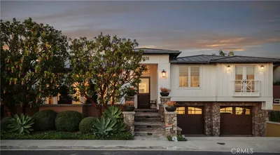 Boasting charm, a prime location, and stunning views, this coastal gem by renowned architect Brion Jeannette is available for the first time and offers an unparalleled living experience in the heart of Corona del Mar with 96' of west-facing frontage. Designed to capture uninterrupted vistas of the Pacific Ocean, Catalina Island, Peninsula, city lights, and Newport Harbor Jetty, this French Country-style cottage is situated on a unique 65' deep corner lot, spanning across two combined lots-- which cannot be duplicated today. Spanning approximately 4,770 square feet, the sun-filled interiors feature four bedrooms and three-and-a-half bathrooms. A charming living room, warmed by a wood-burning fireplace, seamlessly flows into a formal dining area. Adjacent, is a secondary living room where a garden window bathes the brick-surround fireplace in natural light. This inviting space opens to a delightful kitchen, complete with a sunny breakfast nook, an island, wood cabinetry, and new quartz countertops. The main level is rounded out by a powder room and an en suite bedroom offering a jacuzzi tub. Throughout the home, you'll discover character in every corner—antique leaded glass, beamed ceilings, wood flooring, new carpeting, and crown molding. Wood-framed doors open to a rare, beautifully landscaped backyard with multiple patios and a barbecue area, offering effortless grand-scale entertaining in a serene setting where ocean breezes and tranquility converge. Upstairs, three bedrooms await, including the sumptuous primary suite. This retreat offers an ocean and city lights view balcony, cozy fireplace, oversized marble walk-in shower, jacuzzi tub, marble vanity area with dual sinks, and a bonus room that could serve as an exercise space. Down the hallway, a private office with built-in shelving and another bonus room with an en suite full bath provide versatile spaces for work or leisure. Atop the home, the rooftop deck offers breathtaking views of the world-famous surfing spot, "The Wedge," where waves reach captivating heights. An oversized two-car garage with laundry completes the home. With panoramic views spanning the ocean horizon, Catalina Island, and Newport Harbor, this residence is perfectly positioned to appreciate Newport Beach and Corona del Mar's most iconic sights. All this, while being just moments from renowned beaches, Lido Marina Village, and John Wayne Airport.