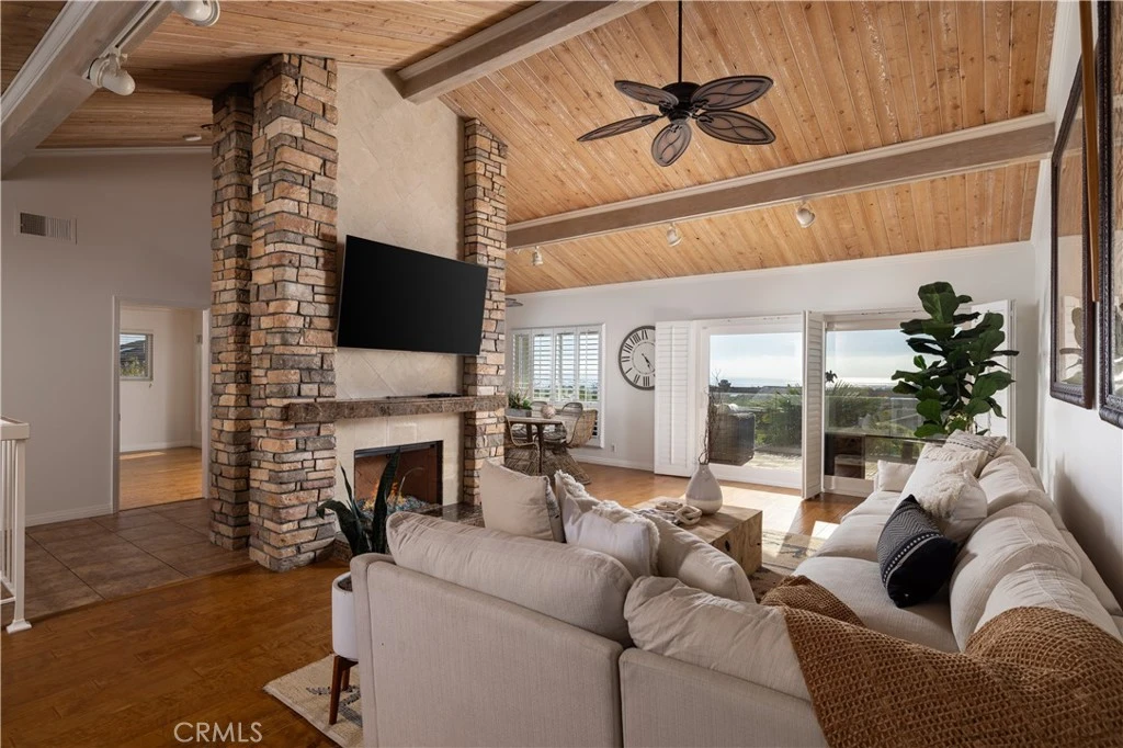 Welcome to Jasmine Creek, where panoramic sit-down ocean views meet modern luxury. Recently expanded and renovated, this coveted Plan 5 residence now features three en-suite bedrooms, including an oversized primary retreat. Vaulted ceilings and a reverse floorplan maximize the breathtaking vistas, Catalina and San Clemente Islands, Newport Harbor, Balboa and Newport Piers, and waves breaking along the coastline, all from the comfort of your living room. The open-concept design showcases hardwood and tile flooring, a custom stone fireplace, wet bar, and a chef’s kitchen with bespoke cabinetry and soft-close pull-outs. Entertain on the expansive balcony with retractable awnings, multiple gas hook-ups for grilling or heaters, and endless blue-water views. As evening falls, the view transforms into a vibrant show of lights, with the Pavilion and Ferris wheel at the Fun Zone glowing in shifting colors against the night sky. Additional features include energy-efficient central HVAC plus dual mini-splits, tankless hot water, commercial-grade landscape lighting, and a finished epoxy garage with built-ins and remote app-controlled access. Located in a private cul-de-sac less than a half mile from Corona del Mar Village, less than 1 mile to the beach, and just minutes from Fashion Island, this home blends convenience with prestige. Jasmine Creek offers 24-hour guard-gated security, six tennis courts, three pools with spas, a clubhouse, and over six acres of lush greenbelts. This is the rarest opportunity in Newport Beach for a true sit-down ocean view home on the market today. Come experience the lifestyle for yourself