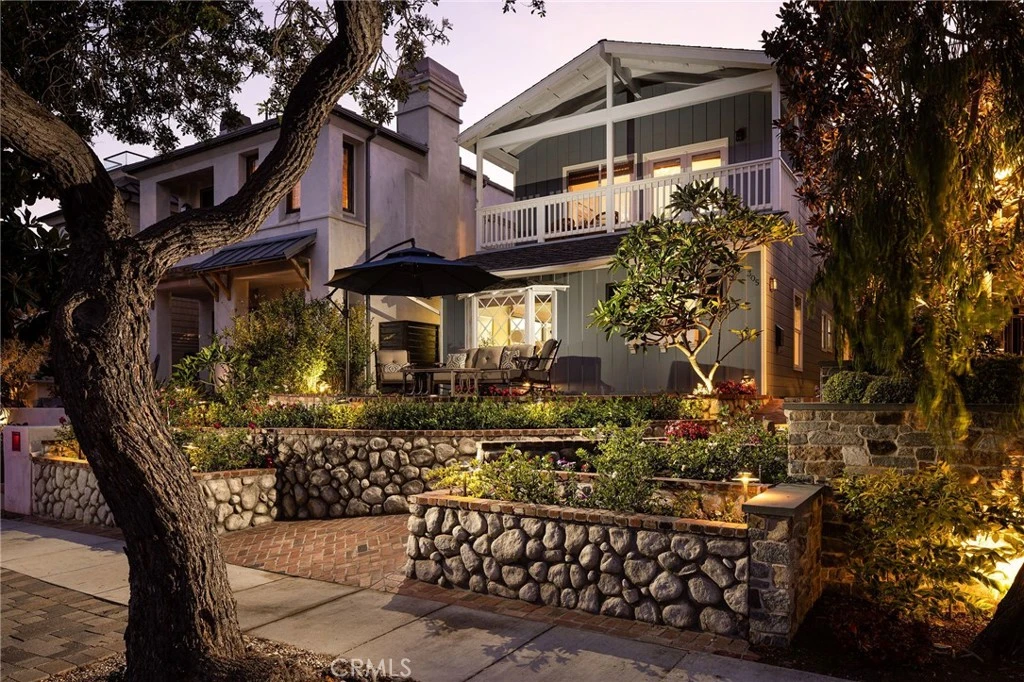 Coveted Southeast Corona del Mar Village Location. Experience the quintessential Corona del Mar Village lifestyle in this charming Cape Cod-style beach cottage, perfectly situated just steps from the sand in one direction and vibrant shopping, dining, and entertainment in the other. Nestled south of Pacific Coast Highway and bordering Seaview Avenue, this home offers the best of coastal living in one of the Village’s most desirable neighborhoods. Set above street level for added privacy, this three-bedroom, four-bath residence welcomes you through a classic Dutch door into a light-filled living room with a cozy fireplace and wall of windows that open to a spacious, secluded courtyard patio—perfect for indoor-outdoor living. The well-appointed kitchen features granite countertops, a generous island for prep or casual dining, and a layout ideal for entertaining. Downstairs, you'll find two bathrooms and a large bedroom suite complete with a sitting area and inviting window seat—perfect for morning coffee or an afternoon retreat. The hallway leads to a charming built-in sleeping alcove and a cozy media lounge. Upstairs, a full primary suite awaits, boasting vaulted ceilings, an ocean view peek from the private balcony, and an airy, relaxing ambiance. The home is finished with warm wide-plank floors by Loaré Carlisle and Saltillo-style tile that adds coastal character. The elevated front patio offers a great space for entertaining while maintaining privacy. Behind the home, a detached two-car garage is topped by a separate studio-style guest suite—complete with kitchenette and bathroom—ideal for visitors, a tenant, a home office, or a private gym. Gated and fenced for privacy, this beach cottage is full of charm and potential. Move right in, customize to your taste, or build your own dream home in this prime Village location. Don’t miss this rare opportunity to own a slice of paradise in Corona del Mar.