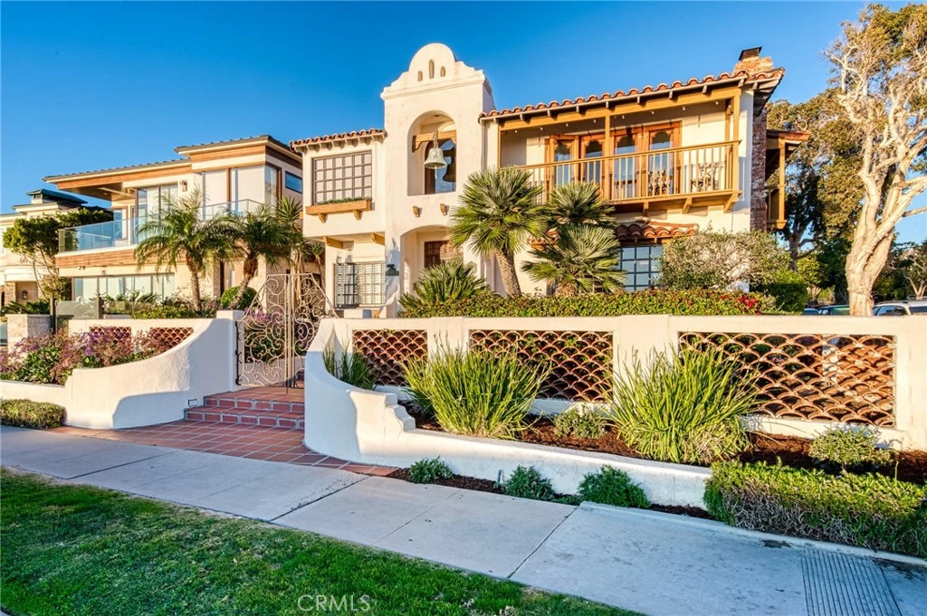 Ocean, Catalina and Newport Harbor views. This furnished Ocean Blvd home has impressive ocean and whitewater views. Located just across the street from Big Corona and Little Corona beaches, this spacious 5 bedroom, 6 bath home offers formal living and dining rooms, office lounge, upstairs kitchenette, upper decks on every side.This beautiful home is well appointed with hardwood flooring, two fireplaces, upstairs and downstairs laundry areas, and two primary bedroom suites (one is set up as a large media room). A guest bedroom is located on the first floor. Enjoy outdoor living in the front lounge area with sunset views, and a rare backyard to relax and share with family and friends. View decks located on each side allow for natural light and fresh sea breeze. The office lounge upstairs along with the primary bedroom suite offer some of the most engaging and expansive ocean views and sunsets. Enjoy your morning coffee and beverages on the upstairs bar and deck lounge. Entertain in a beautiful large backyard with a fountain surrounded by bougainvillea, and citrus trees. With over 4,800 sf, this home is comfortable and spacious. Live in the best Ocean Blvd location. Please call for a showing appointment.