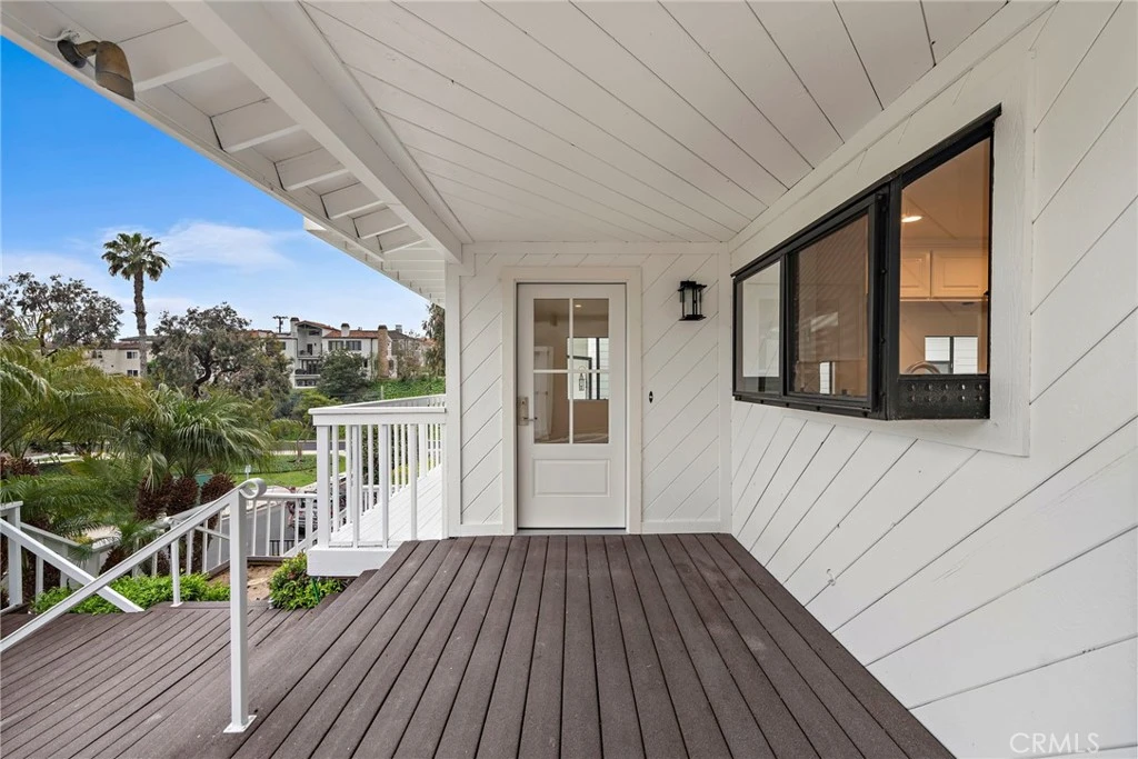 This recently refreshed front unit offers a serene coastal retreat with its prime location by the Goldenrod Footbridge and always-desirable South of PCH ease of access. Adorned by the bright and airy living space, freshly updated flooring and paint create a contemporary backdrop. The open floor plan seamlessly connects the living, dining, and kitchen areas that include updated appliances, stone countertops, and ample cabinetry - providing both style and functionality for the home chef and entertainer. A breakfast bar offers casual dining options, while the adjacent dining area is ideal for more formal gatherings. Two spacious bedrooms provide comfortable accommodations, each with their own updated bathroom for added convenience and privacy. The primary suite is a tranquil haven, featuring a luxurious ensuite bath and ample closet space. Outside, the front patio offers a peaceful oasis for enjoying morning coffee or alfresco dining in the ocean breeze. With its prime location, you'll enjoy easy access to the vibrant shops, restaurants, and beaches of Corona Del Mar Village. Please note that the home next door is under construction.