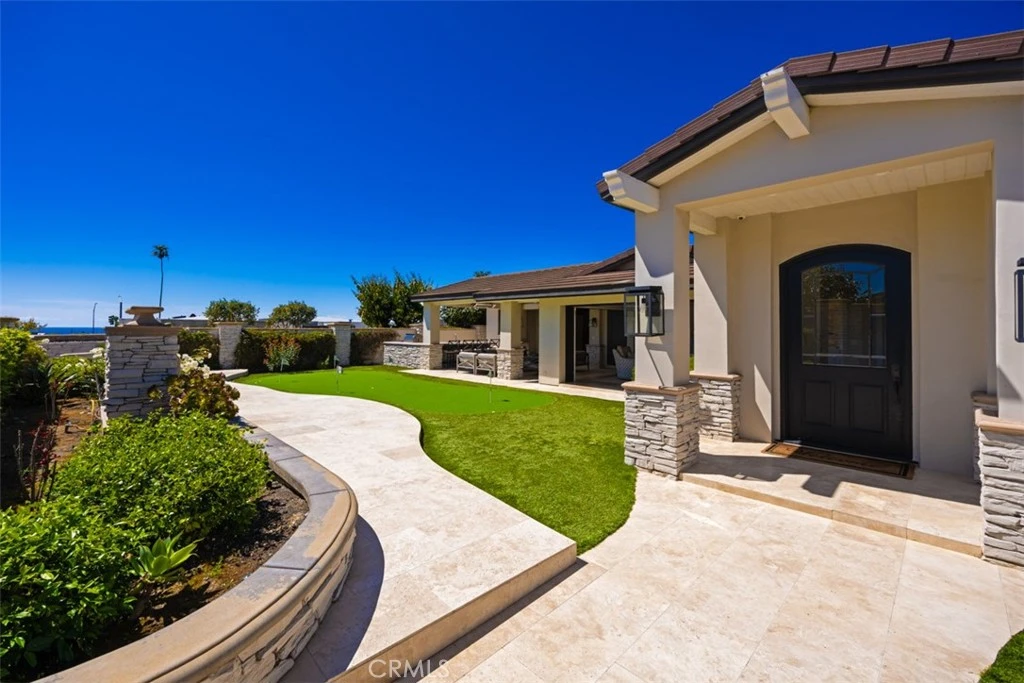 Set on a desirable corner lot within the highly desirable community of Cameo Highlands, this single-level residence offers a rare combination of privacy, thoughtful design, and coastal living, with ocean views enjoyed from the rooftop deck and access to one of the most secluded beaches in the area. The home has been carefully reimagined with a focus on both functionality and style, featuring 4 bedrooms, 4 bathrooms, and a dedicated office. The layout is designed for easy, everyday living while still offering great flow for entertaining. Outdoor spaces are a true extension of the home, with new stone hardscape, a covered lounge area, multiple seating spaces, and a six-hole putting green. The setting is ideal for hosting or simply enjoying the relaxed coastal environment, with private gated access enhancing both convenience and privacy. Inside, the kitchen is well-equipped with Carrara marble countertops, high-end stainless steel appliances, bar seating, and generous storage. It connects naturally to the dining area and main living space, creating a comfortable and open environment. The primary suite offers a quiet retreat, complete with a fireplace, spacious closet, and a well-designed bathroom. A secondary en-suite bedroom provides privacy for guests, while two additional bedrooms are positioned nearby with access to a shared bath. Additional features include a large laundry room with built-in workspace, a two-car garage with ample storage, and exclusive access to community beaches. A great opportunity to own a well-designed home in one of Corona del Mar’s most sought-after neighborhoods, offering a balance of privacy, location, and coastal lifestyle.