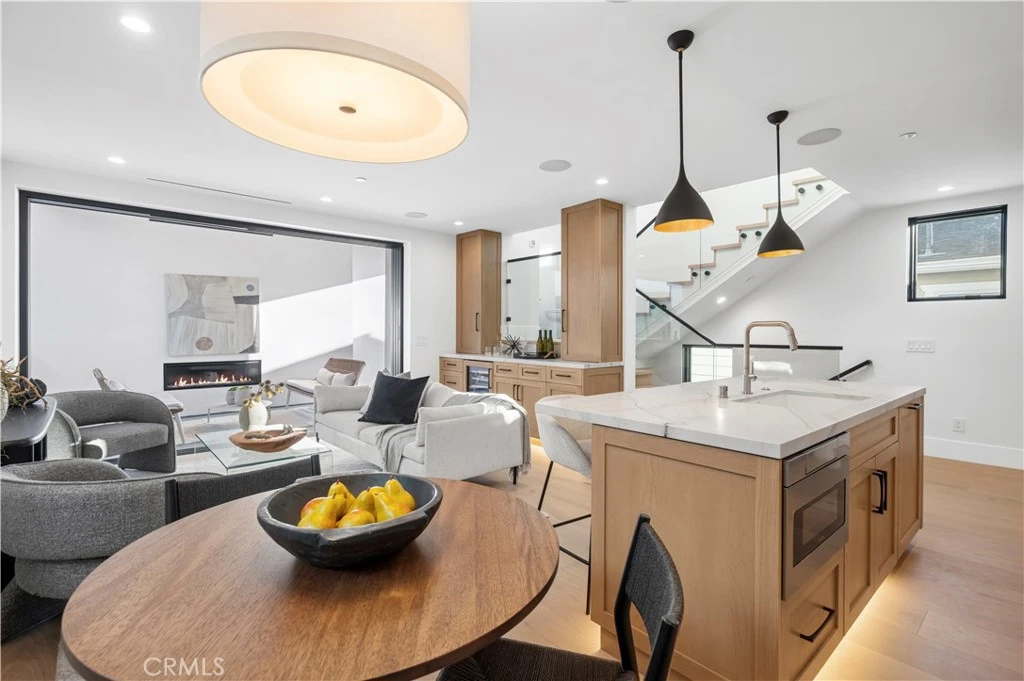 Driven by a passion for luxury residential design, DeCarrier, Montesantos Builders and Amy Mitchell Design present this signature new-construction residence - an inviting expression of refined coastal living in one of Southern California’s most cherished seaside communities. Thoughtfully designed for both beauty and ease, this 2-bedroom, 2.5-bath home offers a seamless blend of sophistication and comfort. Soaring ceilings, European white oak wide-plank flooring, and abundant natural light create a warm, airy atmosphere throughout. The open-concept main living level centers around a stunning gourmet kitchen with custom cabinetry, quartzite countertops, Sub-Zero and Wolf appliances, and an oversized island - perfect for casual mornings or lively evenings with friends. Living and dining spaces open effortlessly through disappearing glass sliders to a fireplace-anchored California room, inviting year-round indoor-outdoor living. The primary suite serves as a peaceful retreat, featuring a custom walk-in closet and a spa-inspired bath with marble finishes, dual vanities, and a spacious enclosed shower. Upstairs, a secondary ensuite bedroom opens to two rooftop decks - one ideal for quiet moments, the other designed for dining, entertaining, and sunset gatherings. Just moments from Big Corona Beach and the village’s boutiques and restaurants, this exceptional home delivers the quintessential Corona del Mar lifestyle.