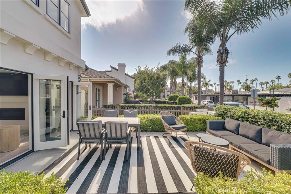 Positioned perfectly, In the coveted Flower Streets of Corona Del Mar Village, just blocks from the beach, this beautifully fully furnished modern farmhouse offers rare ocean views, a private rooftop deck with fireplace and kitchenette, and effortless indoor-outdoor coastal living. Built in 2018, this rare four-bedroom, four-bath front residence includes a coveted main-level bedroom and full bath, ideal for guests or flexible living. Positioned on a street with homes on only one side, the property enjoys added privacy and natural light, creating a serene village oasis. The open-concept living areas are flooded with sunlight, showcasing soaring ceilings, European white oak floors, and a sophisticated neutral palette. The living room features a sleek custom fireplace and French doors that open to an expansive front patio—perfect for entertaining or relaxing in true coastal style. The chef’s kitchen is a dream, appointed with high-end Thermador appliances, gas range, modern quartz countertops, and abundant space for gatherings.Upstairs, the primary suite is a private retreat, complete with a gas fireplace, walk-in closet, and a wraparound view deck. The spa-inspired bath includes dual sinks, quartz counters, soaking tub, and separate shower. The home’s highlight is the cozy rooftop deck, perfectly designed for sunset entertaining, complete with a fireplace, kitchenette, and panoramic ocean views.Additional amenities include EV charging, tank-less water heater, air conditioning, interior laundry, attached garage, and covered carport. Located in the heart of the CDM Village, this home offers ultimate walk-ability to world-class restaurants, boutique shopping, cafés, and beaches, delivering the quintessential Corona del Mar lifestyle in a turnkey, fully furnished package.