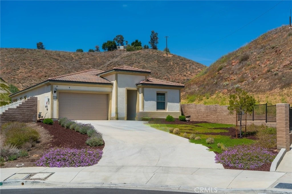 A Natural Sanctuary in Temescal Valley Elevated 55+ Welcome to a rare opportunity in Terramor, Corona’s premier guard-gated 55+ community located in Temescal Valley. This expansive IronTree II model, the largest of its kind, is tucked away at the end of a quiet cul-de-sac on one of the neighborhood’s most private and generous lots. Set on just shy of 11,000 square feet, the home is embraced by nature on nearly every side. Undisturbed hillsides rise gently around the property, creating a serene backdrop filled with wildflowers and the flutter of hummingbirds by day, and the soft calls of owl echoes at night. The setting brings a deep sense of peace, with morning sunlight filtering in from the east and the cooling shade of the north enhancing the living spaces. Inside, 10-foot ceilings and an open layout create a feeling of spaciousness and ease. At the heart of the home is a striking 10 foot kitchen island, framed by thick quartz countertops and a modern farmhouse sink. Recently painted in a soft Designer Flat White, the interior exudes simplicity and calm. With paid solar, the home reflects a thoughtful balance of modern efficiency and natural harmony. This home is intentionally positioned with its rear facing the ascending hills a layout that promotes a grounded, calming vibe. The elevated position offers sweeping skies and uninterrupted sunset views over the Santa Ana Mountains, creating a sense of openness and connection to the surrounding landscape. The outdoor living space offers effortless tranquility low maintenance, yet rich in privacy and presence. The house is more spacious than photos depict. Featuring two spacious bedrooms, two beautifully upgraded bathrooms, and over 1,900 square feet of living space. A driveway accommodating up to six vehicles, along with an epoxy-coated two-car garage, completes the home’s blend of comfort and function. Dive into luxury with two resort-inspired pools one indoors, one out alongside a vibrant clubhouse complete with a bar and entertainment lounge, rejuvenating spa and sauna, state-of-the-art fitness center, courts for tennis, pickleball, and bocce, cozy fire pits, a craft and game studio, community garden, scenic walking trails, dog-friendly parks, and so much more to explore. This home isn’t just a place to live it’s a place to feel grounded, inspired, and at peace with the world around you. The side road is Emergency access only to available Firetrucks, the road is a dead end to a fire hydrant.
