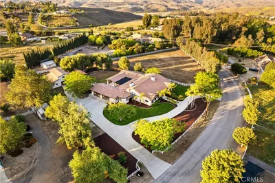 Welcome to the Ultimate Luxury Living in Corona, CA! Presented with Amazing Panoramic VIEWS, this 4.61acre property has 5bed/6baths in Main House and 1bed/1Bath Pool house/ADU. The property has numerous parking options (7 garage spaces), with an attached 3 car garage with workshop AND a 4 car detached garage/workshop with 2 attached carports and 2 additional guest carports. Behind the automated gated entrance and built with the finest modern craftsmanship, this Intelligently Designed Home has a feel of spacious comfort with 10' high ceiling and 8' doors throughout the entire downstairs and upstairs. The Living Room's High Vaulted ceiling and 17x9' panorama custom sliding doors create a dramatic open atmosphere....And VIEWS. The partially enclosed Large Outdoor Living Area is ideal for alfresco dining or gathering around the built-in biofuel fireplaces. Stepping outside feels like entering a private resort. The centerpiece is a 40’x20’ pool, complete with a spa and diving board. The expansive patios feature seating areas, biofuel fireplaces & gas heaters. The pool house includes a kitchenette, relaxing sauna, and full bathroom, that can easily be converted into an ADU. The Main House has 5 spacious bedrooms each with their own bathroom. The master suite feels like a private retreat with direct access to a balcony offering panoramic views, luxurious bathroom featuring a free-standing bathtub, an oversized shower, a spacious walk-in closet, and a separate gym or retreat. This Home's Modern top of line Features include German-engineered cabinetry throughout, Haiku Big Ass ceiling fans, Gaggenau built-in fridge, Miele oven, microwave, coffee maker, gas cooktop with range hood. Smart home technology with a Control4 SmartHome System, enhances every corner of this property, offering complete control over lighting, audio-visual zones, security, sprinklers and more from the convenience of a mobile app. This home has 61 owned solar panels generating 17 KWH of power and reducing annual energy costs to zero since 2017, coupled with multiple EV charging stations underscore the home’s commitment to modern, eco-friendly living. A dedicated IT/server room provides central connectivity to the hardwired smart systems, and fire suppression system. This property also contains a garden area, fruit orchard, Qty-3 20-foot Containers for storage or work, and room for RV Parking. This home offers endless possibilities...and Views! NO HOA! CHECK OUT THE VIDEO AND 3D tour!