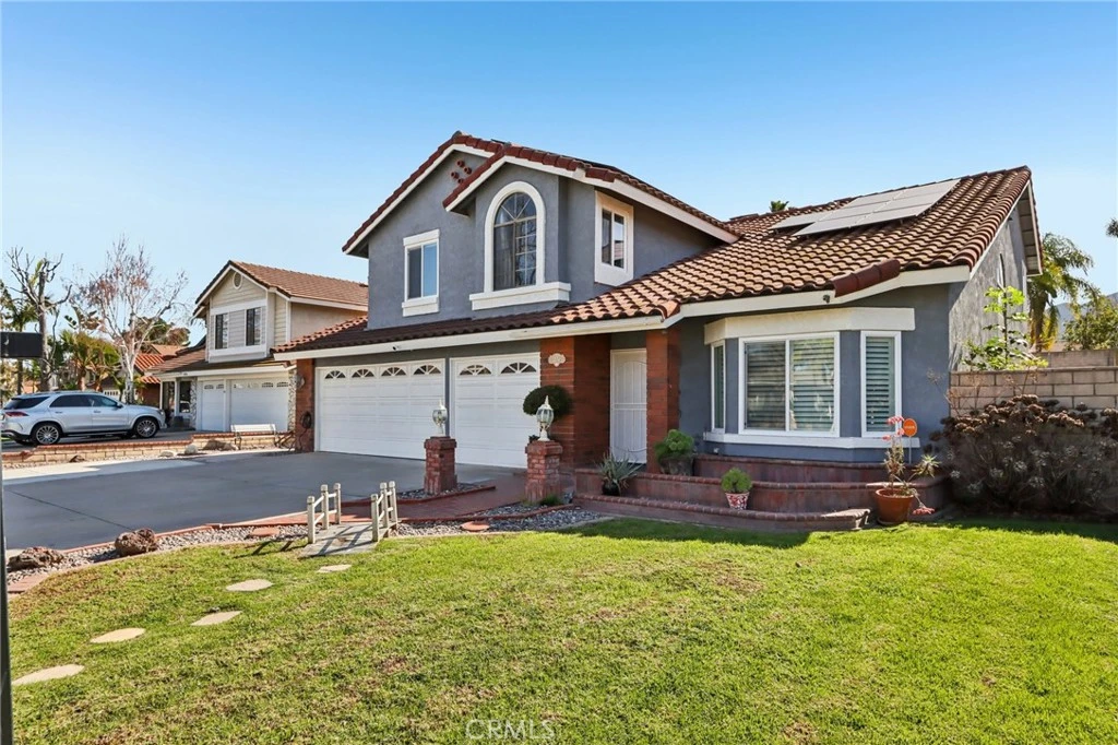 Welcome to this stunning 5-bedroom, 3-bath home designed for both comfort and entertaining. The downstairs bedroom and full bath are perfect for guests, while two open living areas filled with natural light create inviting spaces for family gatherings or cozy evenings at home. The large kitchen is ideal for home-cooked meals or hosting friends, offering plenty of space for everyone to gather. The master suite features a fireplace, his-and-her sinks, a vanity, soaking tub, and a walk-in closet. Upstairs, a loft/den complements the four additional bedrooms, providing versatile space for work, study, or a playroom. Step outside to your private backyard oasis, complete with a large pool, relaxing jacuzzi, and play set. The pool includes a removable safety fence to keep pets and children safe. Energy-conscious homeowners will appreciate Tesla Solar and plug charger, offering long-term efficiency and savings. The custom man cave garage provides a unique space for hobbies, game nights, or a private retreat. Within walking distance to Ben Franklin Elementary and close to other top-rated Corona schools, shopping, dining, and freeway access, this home perfectly combines space, style, and convenience ready to welcome you home.