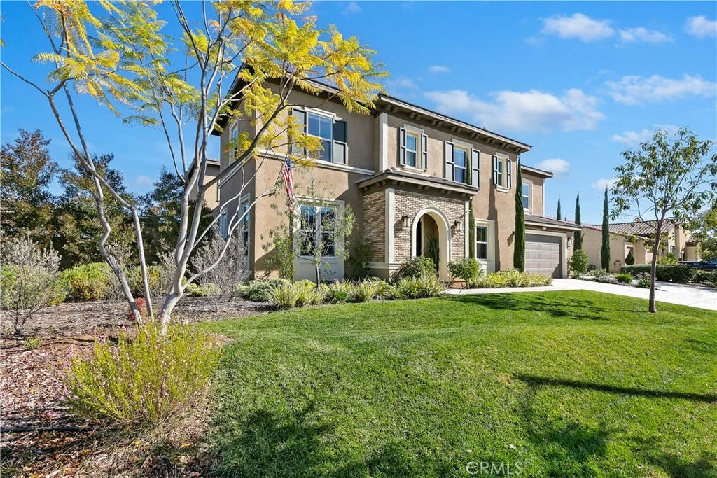 Experience luxury living in this exceptional executive residence located in the prestigious Bella Vista Estates, an exclusive enclave of just 26 homes. Offering approximately 4,432 square feet of thoughtfully designed living space, this home features five bedrooms, four and a half baths, a downstairs office, and an upstairs loft. The open-concept floor plan is highlighted by walls of bi-fold glass doors that seamlessly connect indoor and outdoor living—ideal for large gatherings and entertaining. The family room with soaring 19-foot ceilings and an abundance of windows fill the home with natural light. The elegant formal dining room and family room create inviting spaces to relax or host intimate or grand occasions. The chef’s kitchen is truly a gourmet’s dream, featuring granite countertops, a large seated island, stained maple cabinetry with soft-close doors, designer pendant lighting, GE Monogram stainless steel appliances, and a spacious walk-in pantry. The lower level also has a nice size bedroom with walk-in closet and full bath. Upstairs, the oversized primary suite offers a gorgeous stone fireplace and a large private balcony with 180-degree panoramic city light and mountain views. The resort-inspired bath includes granite countertops, vanity, a soaking tub, walk-in shower, mirrored wardrobe door, and dual walk-in closets. Completing the upper level are three additional spacious bedrooms (one is an en-suite), two full baths, a loft with rock-climbing wall, and a convenient laundry room with sink. The expansive rear yard is an entertainer’s paradise, featuring a built-in barbecue island , Lion grill, kegerator, sink, fire table, sauna, cold plunge, stucco patio cover, pergola, private courtyard, fruit trees, and gated RV parking—all set on an impressive 18,295-square-foot lot. Additional highlights include paid-off solar, a wrought iron staircase, butler’s area with built-in wine rack and cooler, wood-like tile floor throughout downstairs, Ecobee thermostats, remote-controlled blinds, whole-house water filtration and softener, tankless water heater, Tesla charger, and a four-car tandem garage with epoxy flooring, overhead storage racks, and ample space for vehicles and toys. You will love this home!