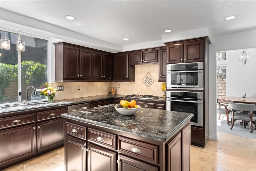 EXECUTIVE HOME | PRIMARY SUITE WITH PRIVATE SAUNA | DOWNSTAIRS GUEST BEDROOM/BATHROOM | PRIVATE BACKYARD PUTTING GREEN | CUSTOM WALK-IN CLOSETS | NO MELLO ROOS | Welcome to this luxury Executive Home nestled next to Yorba Linda and Anaheim Hills in Corona's highly sought-after Sierra Del Oro community—where upscale living meets exceptional privacy and elegance. From the moment you arrive, you're greeted by a sweeping 8-car driveway, manicured landscaping, and an elegant double-door entry that sets the tone for what lies within. Step inside to find soaring ceilings, travertine floors on main level and luxury plank flooring upstairs. Sunlight pours in through expansive windows highlighting the open-concept design and the natural outdoor beauty. The formal living and family rooms feature cozy fireplaces, ideal for refined gatherings or intimate evenings. The gourmet kitchen is a showstopper, boasting leathered granite countertops, center island, coffee bar, walk-in pantry, pendant lighting, and stainless-steel appliances including a 5-burner gas stovetop. The adjoining family room has a wet-bar with bar-top seating + double doors leading to an entertainer’s backyard. Downstairs offers a bedroom next to a beautifully upgraded bathroom—ideal for guests or multi-generational living. Upstairs, the Primary Suite is a retreat with an expansive sitting area and two custom closets, one of which is full-room size with its own luxury display-case island and large window for the perfect natural light while dressing for any occasion. The spa-inspired En-Suite Bathroom features a private dry sauna, deep soaking tub, dual skylights, and walk-in shower. Bedroom 4 is well sized and an oversized Loft with double doors serves as a spacious Bedroom 5 or ideal media room. The laundry room has ample cabinetry, and a 3-car garage includes an upgraded modern door + overhead storage. Outdoors, enjoy complete privacy with lush landscaping, fruit trees, and a serene ambiance. Host unforgettable gatherings, unwind under the covered patio featuring an overhead heater, or enjoy movie nights with a wall-mounted outdoor TV. There's space to dine, lounge, and play—including your very own private 4-Hole Putting Green! Day or night, this backyard offers a blend of comfort, elegance, and entertainment. Luxury living at its finest!