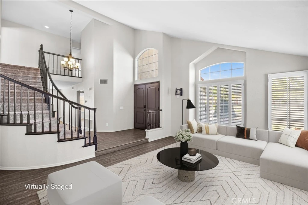 Welcome to this beautifully maintained turnkey home offering 4 bedrooms, 3 full bathrooms, and 2,603 sq. ft. of thoughtfully designed living space. From the moment you step inside, you’ll appreciate the open and airy feel created by vaulted ceilings and an abundance of natural light. The spacious primary suite serves as a private retreat, featuring vaulted ceilings, two walk-in closets, and a well-appointed en-suite bathroom complete with a separate soaking tub and walk-in shower. Upstairs, you’ll find an additional full bathroom with dual sinks and a tub/shower combination, ideal for family or guests. Designed for both comfort and entertaining, the home offers a generous family room, a separate formal dining area, and a large living room with vaulted ceilings. The kitchen is upgraded with quartz countertops, subway tile backsplash, and ample cabinetry, providing both style and functionality. A standout feature is the bonus/game room with a wet bar, perfect for entertaining or creating a customized space to fit your lifestyle. Step outside to a covered patio and beautifully landscaped backyard with fruit trees, offering a relaxing setting for outdoor enjoyment. Conveniently located near hiking trails, shopping, dining, and freeway access, this home combines comfort, space, and location—making it an exceptional opportunity you won’t want to miss.