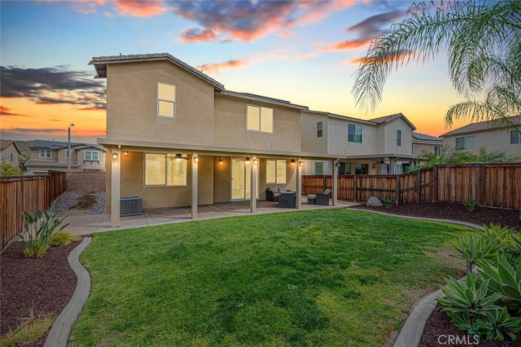 Situated in the gated neighborhood of Serrano Ridge within the beautiful master-planned community of Sycamore Creek, this beautifully maintained home is offered by the original owner and is on the market for the first time. From the moment you step inside, you will appreciate the bright and open floor plan and the pride of ownership throughout. The home features gorgeous laminate flooring and a spacious kitchen designed for both everyday living and entertaining. The kitchen offers white cabinetry, stainless steel appliances, elegant granite countertops, a center island with sink, and stylish pendant lighting. The kitchen flows seamlessly into the spacious family room and dining area, where a cozy fireplace creates a warm and inviting gathering space. The versatile floor plan includes a downstairs bedroom and bathroom, perfect for guests or multi-generational living. Upstairs you will find a generous loft, ideal for a media room, home office, or play area, along with a convenient upstairs laundry room complete with cabinetry and sink. The ample master bedroom provides a relaxing retreat and features a spacious walk-in closet. Additional interior highlights include ceiling fans, window blinds, plantation shutters, and recessed LED lighting throughout. Step outside to the spacious backyard, featuring a stamped concrete deck and a massive Alumawood patio cover complete with lighting and ceiling fans, creating the perfect setting for outdoor entertaining or relaxing evenings at home. Save big on energy costs with the leased solar panel system.Residents enjoy access to the outstanding Sycamore Creek HOA amenities, including a pool and spa, clubhouse, gym, picnic areas, and barbecue facilities. Just moments away, Deleo Park offers sports courts, jogging trails, and a skate park, adding even more recreational opportunities nearby. Hurry and make this wonderful property your new home!