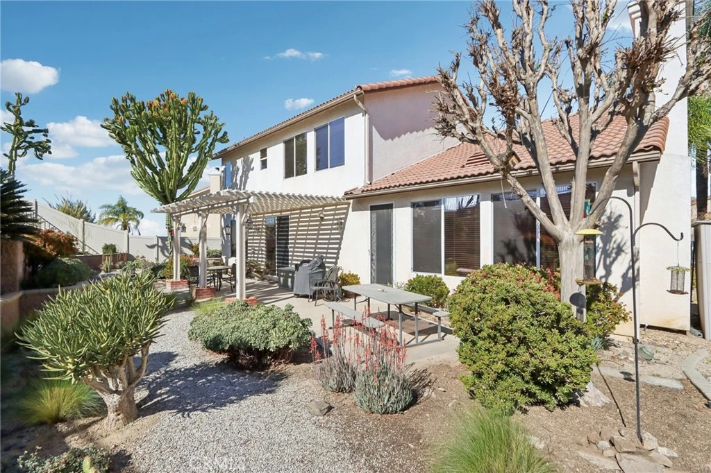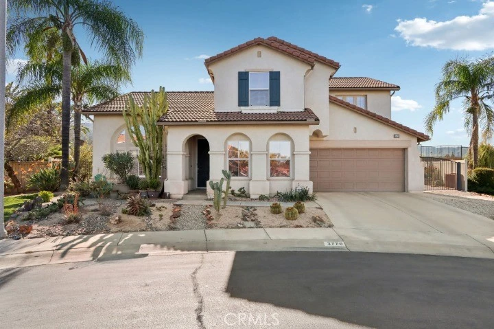 VIEWS | DOWNSTAIRS BEDROOM AND BATH | NO NEIGHBORS BEHIND | LANDSCAPED FRONT AND BACK Located at the end of a quiet cul-de-sac in desirable South Corona, this well-maintained, very private home offers a wonderful opportunity to create your ideal living space in a highly sought-after location. Inside, the home features a bright and open layout with a formal living room highlighted by soaring cathedral ceilings and crown molding, creating an elegant first impression. A formal dining room provides the perfect space for gatherings and special occasions. The spacious family room with fireplace offers a comfortable place to relax and connects easily with the rest of the home. The kitchen is both functional and inviting, offering space for a breakfast table and beautiful glass doors that open to a flexible area that can serve as a home office, study, or additional living space. Two doors lead to the backyard—one from the kitchen and one from the family room—making indoor-outdoor living convenient and natural. The main level also includes a downstairs office that could easily serve as a bedroom, a full bathroom, and a laundry room with a utility sink. Upstairs, a loft provides additional living space ideal for a media room, play area, or workspace. The guest bedrooms are generously sized, while the primary bedroom enjoys beautiful mountain views and abundant natural light, creating a peaceful retreat. The home is in excellent condition and presents an opportunity for a new owner to add personal updates over time and make the space their own. The outdoor setting is truly a standout feature. The front and backyard landscaping create a peaceful, park-like environment designed for relaxation and enjoyment. Very low maintenance, using very little water. The backyard includes a patio cover, fire pit, and newly replaced vinyl fencing, along with a private gate that opens to a path and open land behind the home. With no neighbors directly behind, the property enjoys beautiful views and direct access to nearby walking and hiking trails. Low HOA, low taxes, located in an excellent school district, with easy access to freeways, shopping, and parks.