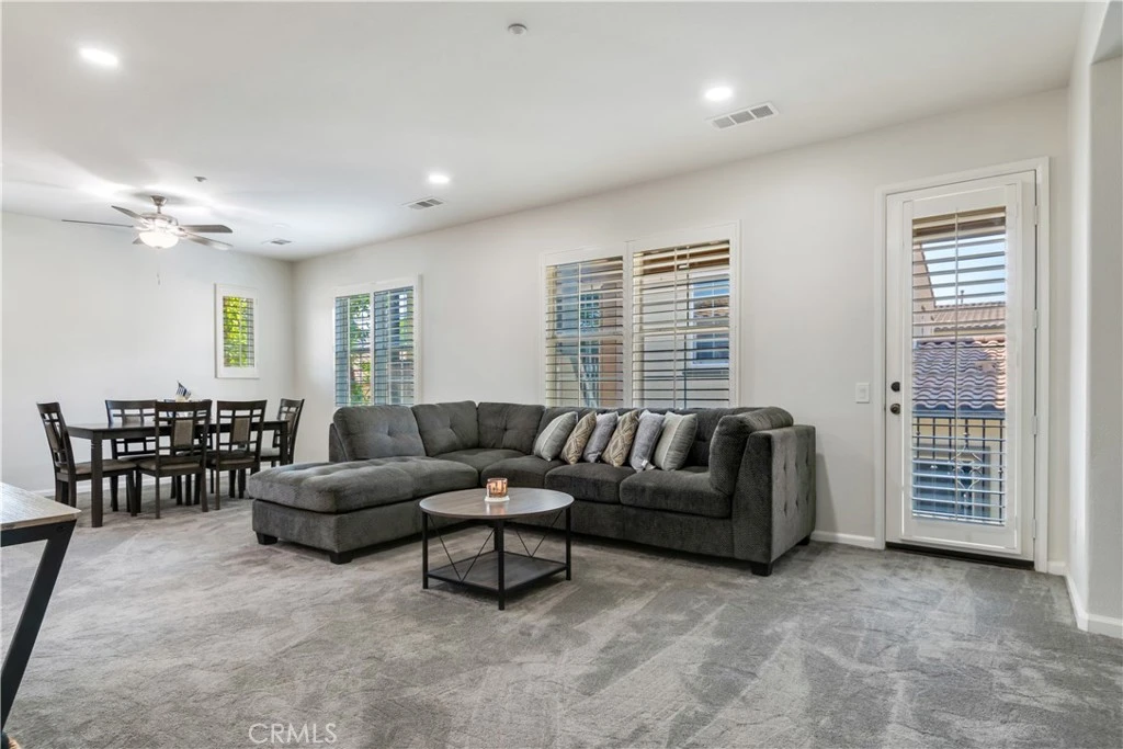 Welcome to a lifestyle of comfort, convenience, and community in this well-appointed 2-bedroom, 2-bathroom condo located in the desirable 55+ gated community of Owens Cove in Corona. Thoughtfully designed for easy, low-maintenance living, this move-in ready home offers a blend of modern finishes, accessibility, and resort-style amenities tailored to active adults. Step inside to an open and airy floor plan featuring a spacious living room, granite countertops in the kitchen, a breakfast bar, and a designated dining area. The primary suite boasts a large walk-in closet and private bath, while the second bedroom is perfect for guests or hobbies. Enjoy quiet mornings or afternoon breezes on your private patio. Additional highlights include in-unit washer/dryer, central HVAC, for year-round comfort attached 2-car garage, and interior location within the community. As a resident of Owens Cove, you will have access to secure gated entry and enjoy beautifully maintained grounds, a pool and spa, clubhouse, walking paths, and social opportunities—all designed with the 55+ lifestyle in mind. Conveniently located just steps from the Shops at Dos Lagos, golf, dining, movie theaters, and medical offices, and with easy access to the 91 and 15 freeways, you are never far from what you need.