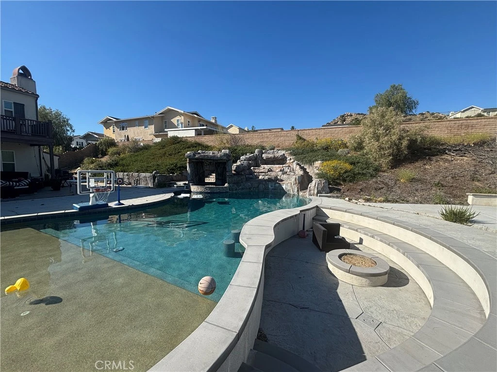 Experience luxury living in this expansive 3,883 sq ft residence built by Taylor Woodrow Homes, ideally situated on over half an acre in the highly sought-after city of Corona. Boasting 5 spacious bedrooms and 4.5 bathrooms, this home offers the perfect blend of comfort, functionality, and resort-style amenities. Step inside to discover a thoughtfully designed floor plan featuring a downstairs bedroom and a private office—ideal for guests or multi-generational living. The heart of the home is the impressive open-concept kitchen, complete with a massive island that seamlessly flows into the oversized family room, creating the perfect space for entertaining and everyday living. Upstairs, the luxurious primary suite offers a private balcony where you can unwind and take in breathtaking city lights views. Each additional bedroom is generously sized, providing ample space for family and guests. Outside, the backyard is truly a showstopper—designed for ultimate enjoyment and relaxation. Recently enhanced with a stunning rock pool featuring a beach entry, waterfall, and slide, this space feels like your own private resort. Enjoy evenings by the sunken fire pit or stay active on the half-court basketball court. With a 4-car garage and expansive lot, there’s no shortage of space for all your needs. This exceptional property combines elegance, space, and lifestyle in one remarkable home—don’t miss the opportunity to make it yours.