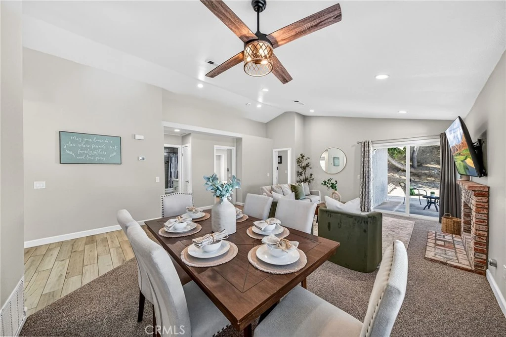 ***Fully remodeled single-story in the highly desirable California Meadows community of Temescal Valley!*** If you’ve been searching for a home where the work is already done, this is it! Step through the front door and you’re welcomed by a bright & open layout with modern finishes. Vaulted ceilings and wood-look tile flooring flow throughout, complemented by modern shaker-style interior doors & updated lighting. The living room centers around a charming white-washed brick fireplace and opens to the dining area, making it perfect for entertaining! The remodeled kitchen showcases white shaker cabinetry, quartz countertops with custom tile backsplash, stainless steel appliances, and recessed lighting. Just off the kitchen is a charming bistro-style dining nook, perfect for morning coffee or a cozy breakfast space. The primary suite offers a peaceful retreat with a beautifully updated bathroom featuring dual sinks, quartz countertops with stone backsplash, LED lighted mirror and a remodeled step-in shower. Down the hall are two additional bedrooms and a remodeled guest bathroom with custom tile shower surrounds, an updated vanity with quartz countertop, stone backsplash and another LED lighted mirror. Step outside and discover a large backyard that is truly a blank canvas. With direct access from both the living area and primary suite, this space is ready for whatever you envision! All the major upgrades have already been completed, including a NEW roof, NEWER HVAC system, NEWER exterior paint, updated lighting and finishes, low-maintenance landscaping, making this home truly move-in ready! Located just around the corner from the community park and less than ½ mile from award-winning Temescal Valley Elementary School. Enjoy close proximity to Glen Ivy Golf Club & Hot Springs Spa, Tom’s Farms, Dos Lagos, and The Crossings for shopping, dining, and entertainment. ***No Mello-Roos, LOW taxes & LOW HOA.*** Homes with this level of updating in California Meadows rarely come up! Don’t miss your opportunity to make this one yours!