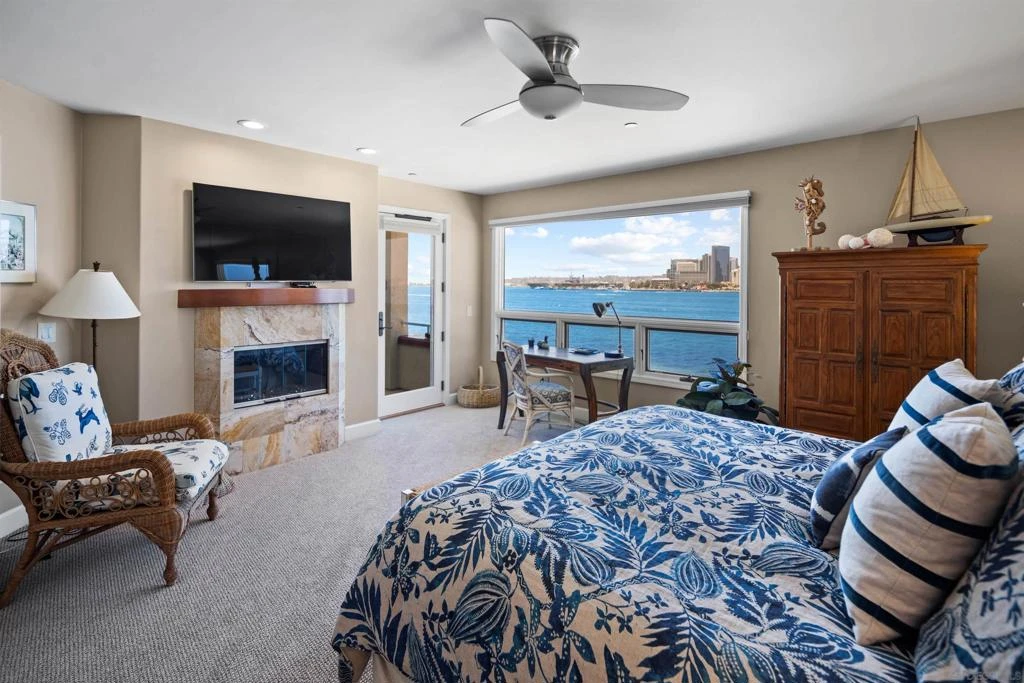 DINCREDIABLE BAY AND CITY VIEWS - AVAILABLE EITHER LONG-TERM OR SHORT TERM FURNISHED. This extraordinarily beautiful corner unit condo with spectacular views of San Diego Bay and Downtown is fully furnished and ready for guests. Located in "The Landing," you have access to a pool, spa, BBQs and gym and you are within walking distance to the Ferry Landing, restaurants, bike path around the bay, shopping, and all Coronado points of interest and festive locations! The unit is well appointed and spacious enough for 2 couples or a family of 4 to spread out and relax and take in all the beauty that Coronado/San Diego Bay has to offer, from Navy ships cruising by, to fireworks and music from the Rady Shell in the evenings. The primary bedroom with king-size bed is complete with en suite bathroom and is located in the front of the unit facing the water and has unobstructed views of the bay and skyline. There's also a French door leading out to a sitting deck that allows for morning coffee or a glass of wine at sunset. The living/dining area also enjoys the same views along with access to the sitting deck. Bedroom 2, also en suite bath, has a queen size bed and is located near the entry of the unit. There is one covered parking spot included, AC and full-size washer and dryer inside unit. Fireplaces located in Living room and Primary Suite Beach chairs provided. You will love this location and want to return each year. Rates vary based on season and length of rental. February - May 2026 $8,500 June/August 2026 $11,500 July 2026 $15,000 September 2026 - thru May 2027 $8,500/mth