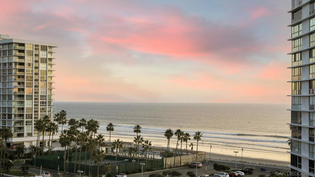 Welcome to our beach retreat and enjoy the sights and sounds of the Pacific Ocean at the highly desirable Coronado Shores. This two bedroom, two bath unit is light and bright with sweeping ocean views from every room. The split floor plan is perfect for visiting guests to ensure privacy. The living room offers comfortable furnishings with a luxurious couch. Comfy carpet in the bedrooms both of which have king beds. Updated kitchen with granite countertops and kitchen aid appliances. Enjoy eating at the dining table while watching sunsets. The complex offers tennis courts, pools, spa, fitness center, beach club and ocean access.