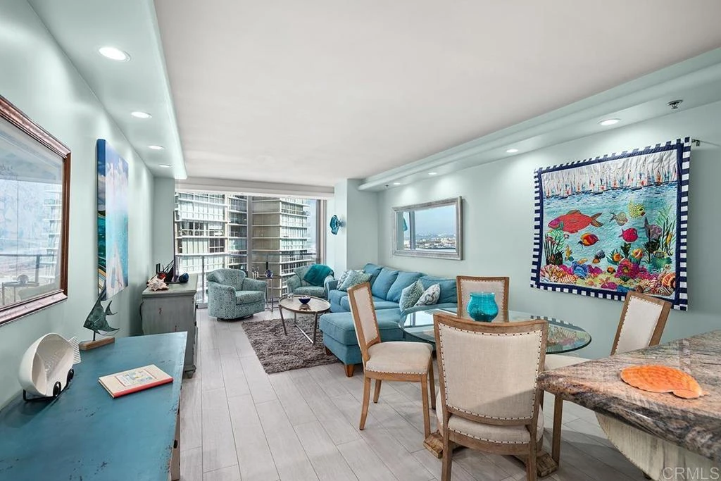 Indulge in the epitome of coastal luxury living with this exquisite offering located in El Encanto Tower within the iconic Coronado Shores enclave, this fully furnished 1-bedroom sanctuary invites you to immerse yourself in unparalleled elegance and breathtaking vistas of the majestic Pacific Ocean and the tranquil San Diego Bay. The layout boasts an airy open floor plan adorned with magnificent stacking sliding glass doors, seamlessly merging indoor and outdoor living spaces for a truly immersive experience. 1 underground parking space and elevator to the unit. Enjoy the 4 pools and spas, 8 Tennis Courts, private club with daily activities. Minimum rental of 28 days. Advertised price is for off season months. Call for more information.